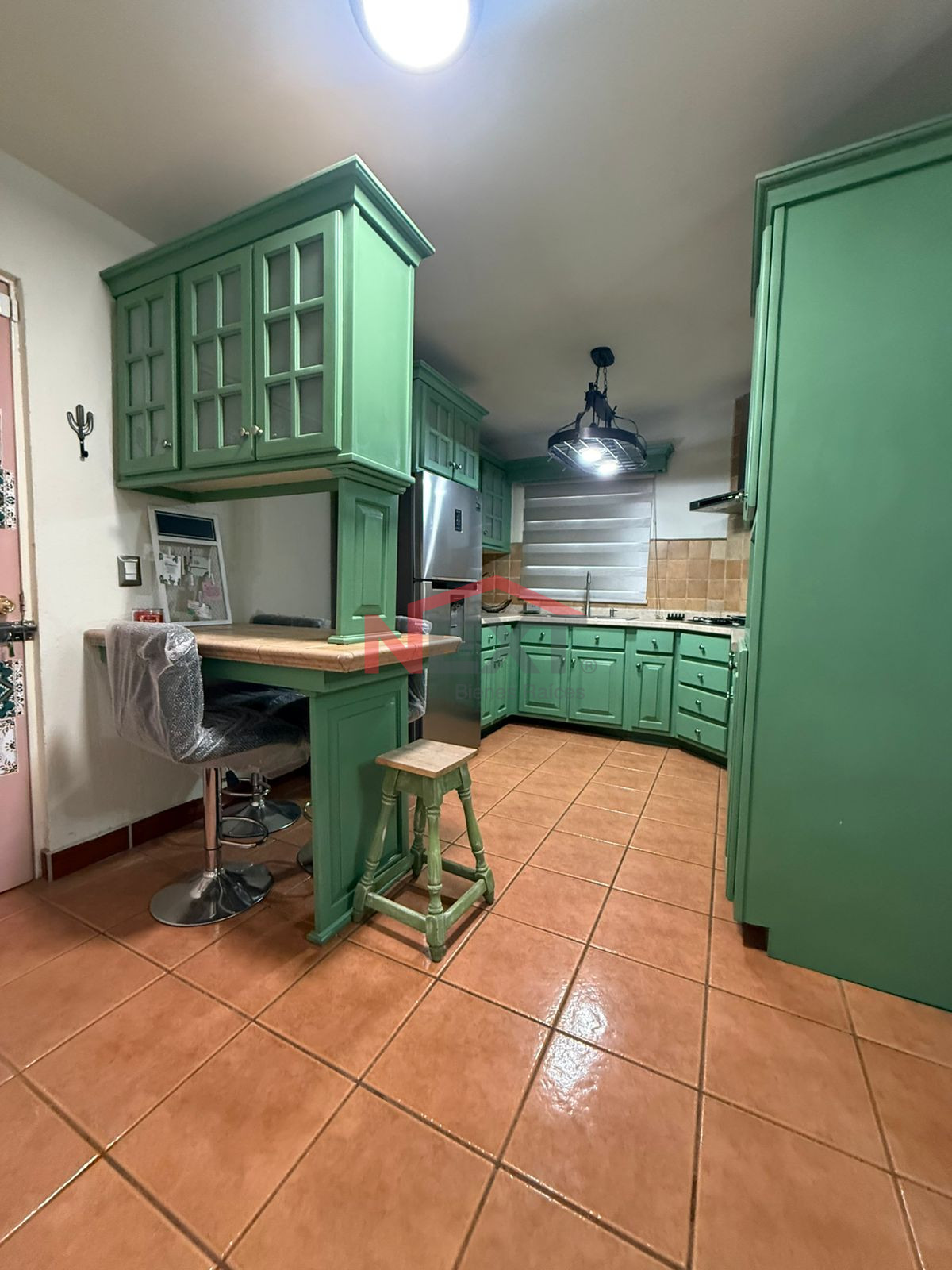 REFRIGERADOR, ESTUFA Y CAMPAÑA, BARRA CON 4 BANCOS