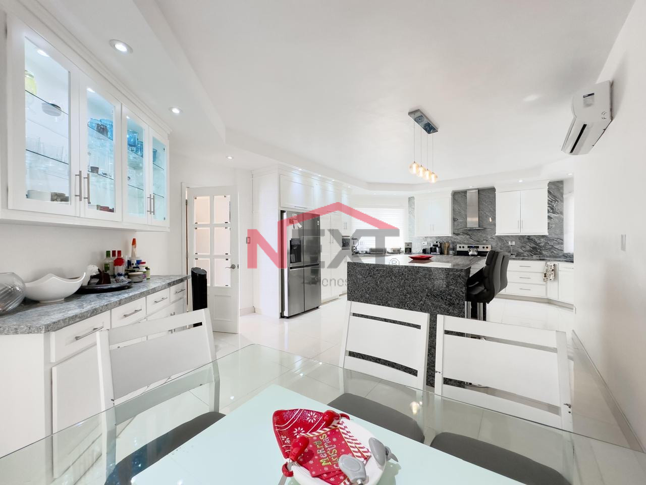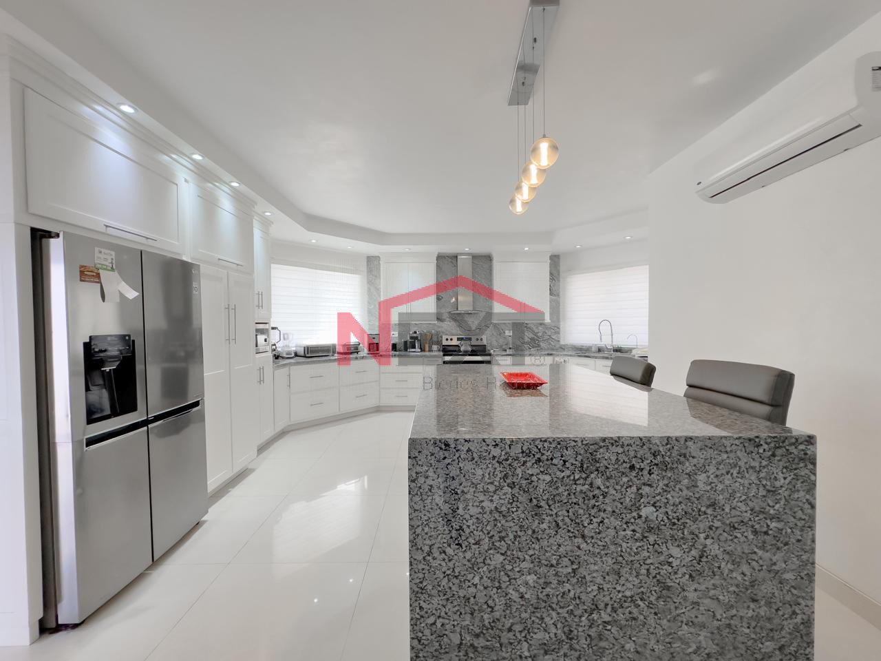 🍳 Cocina de granito y cedro, desayunador, estufa y campana.