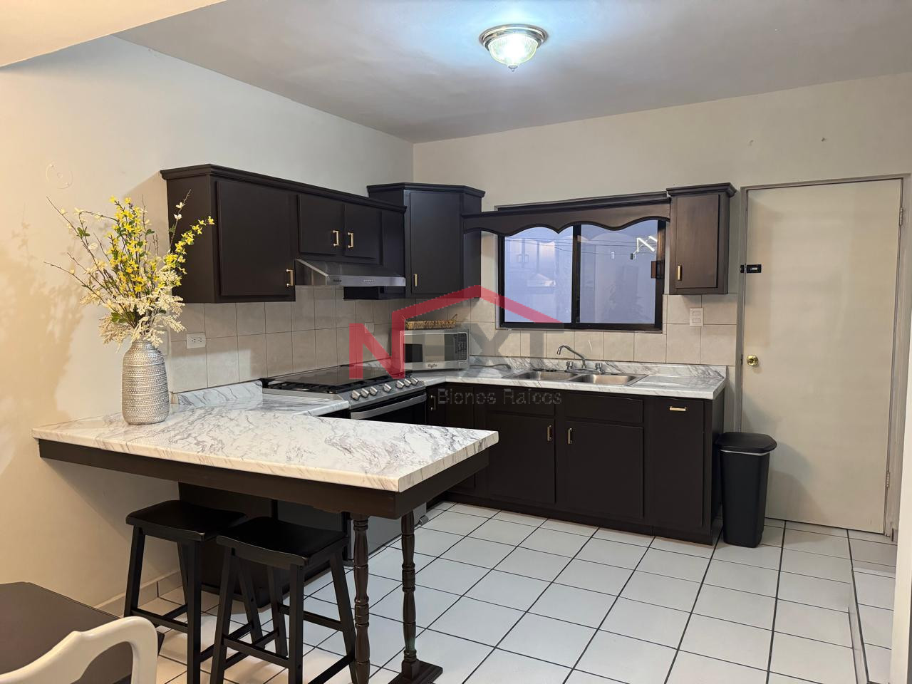 Sala, comedor, cocina con 11 gabinetes, estufa, campana, refrigerador, microondas, lavadora y secadora, 1 equipo de 4 toneladas refrigeracion.