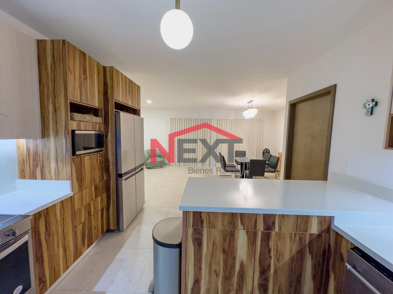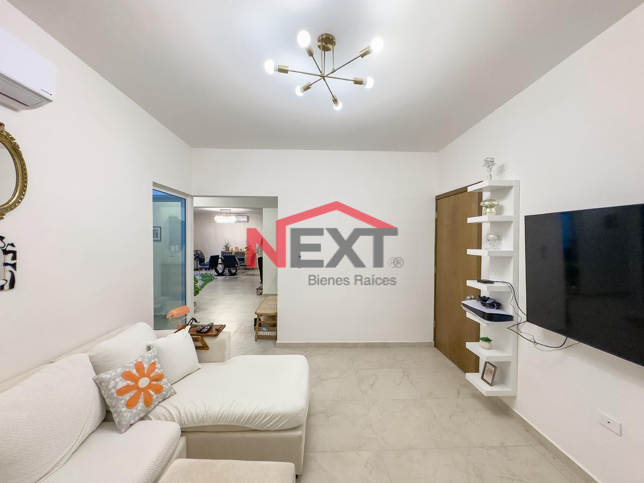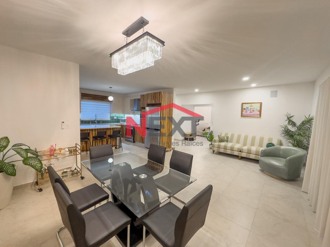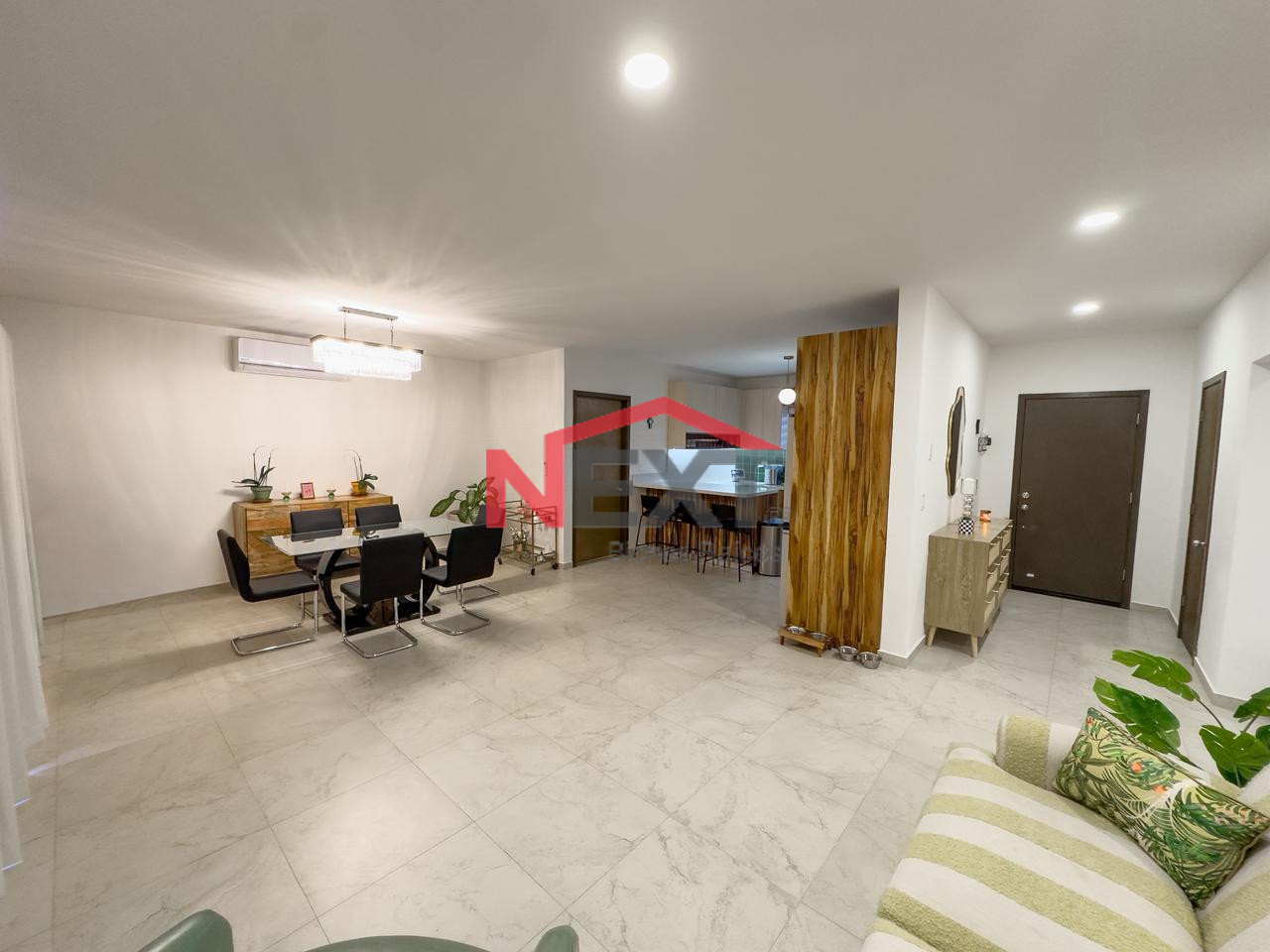 Recibidor, sala, comedor, medio baño, cocina y lavandería.