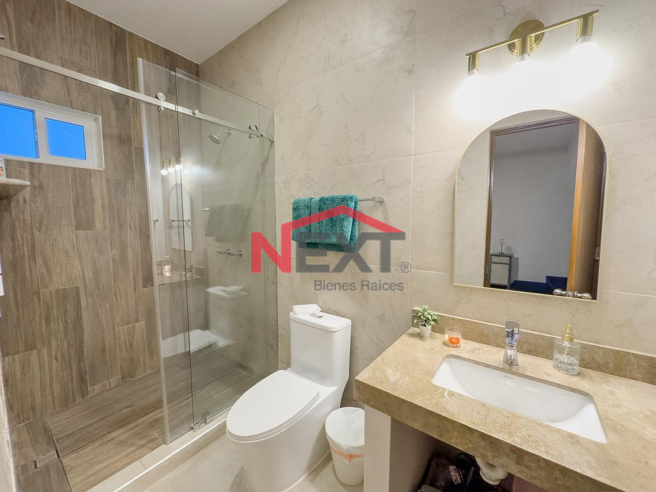 estancia, 2 recámaras secundarias con baño completo cada una.