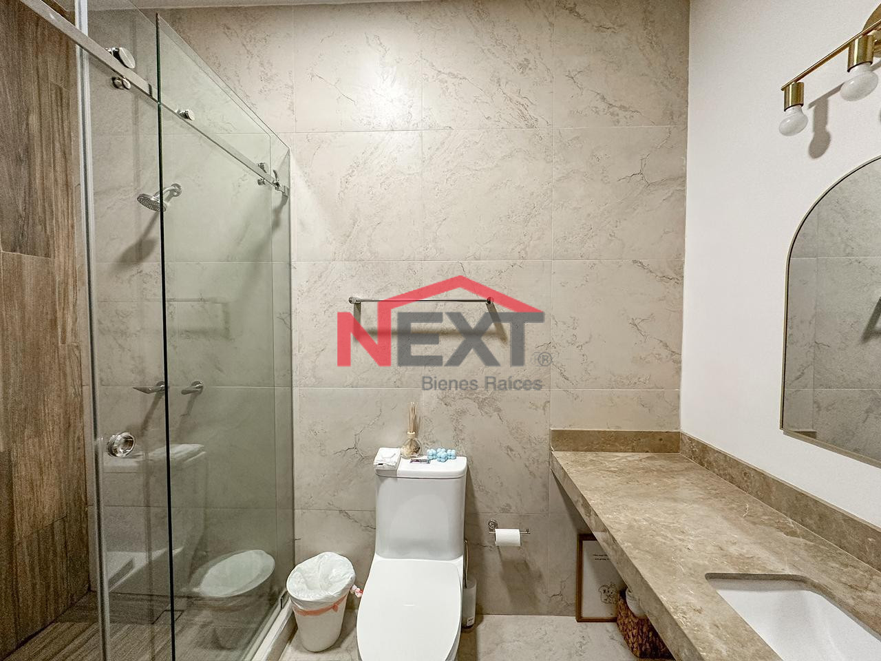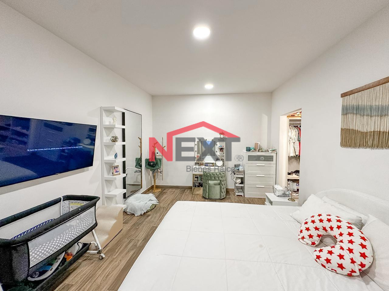 Recámara principal con walk in closet, baño completo y