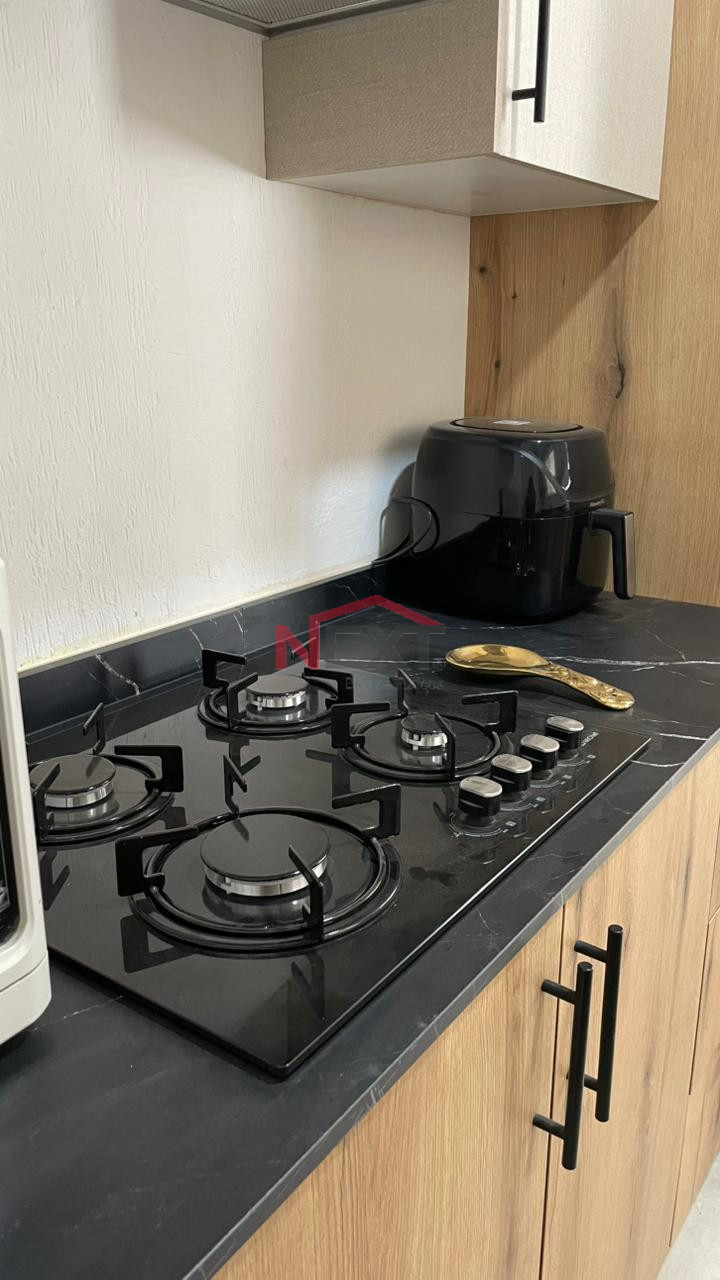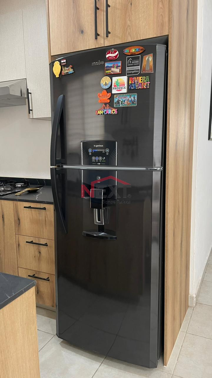 - cocina integral con refrigerador, microondas, estufa y campana