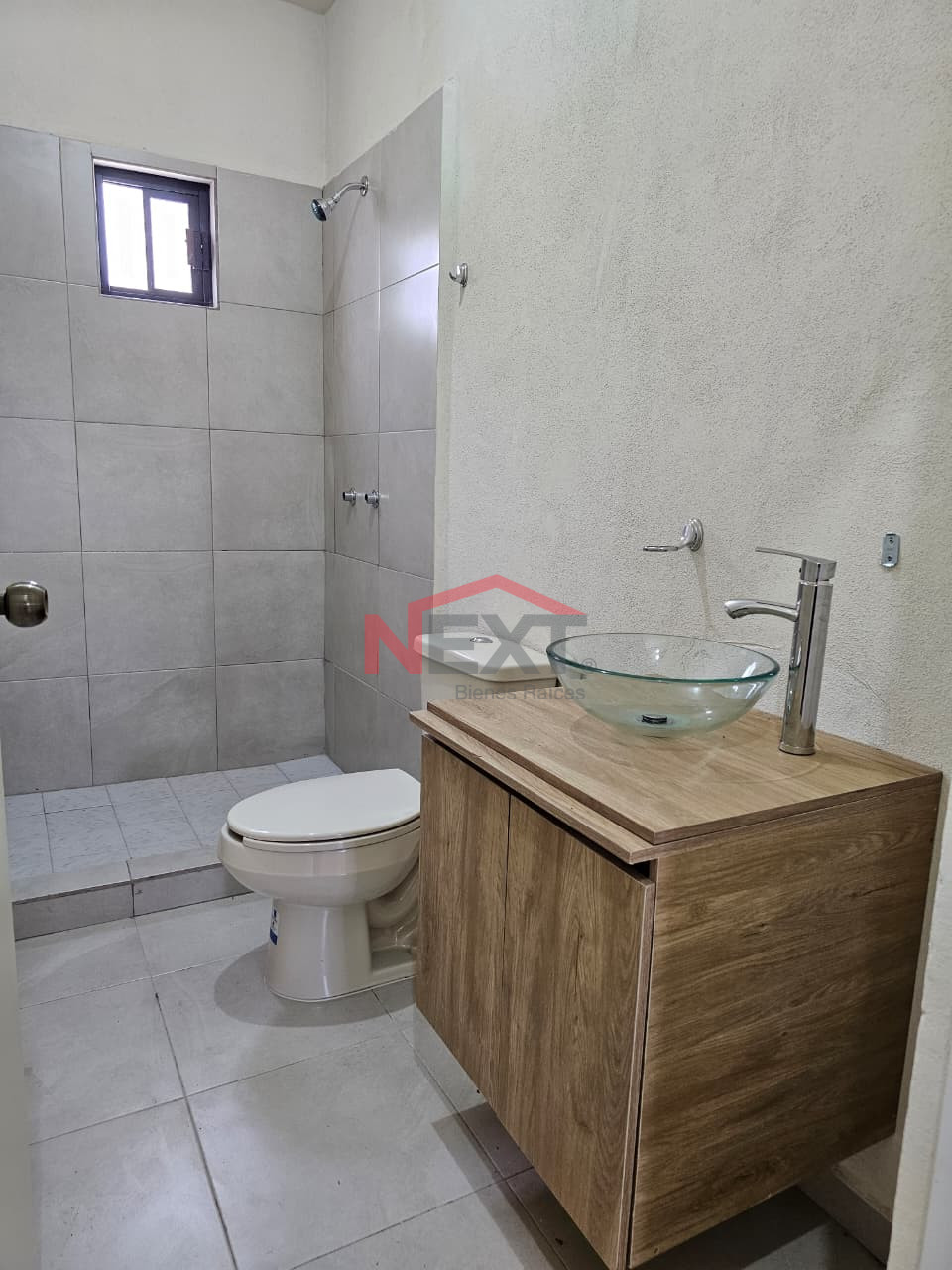 ♦️1 1/2 baños con muebles y ovalines de cristal.