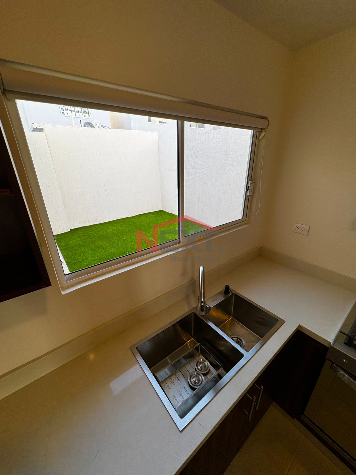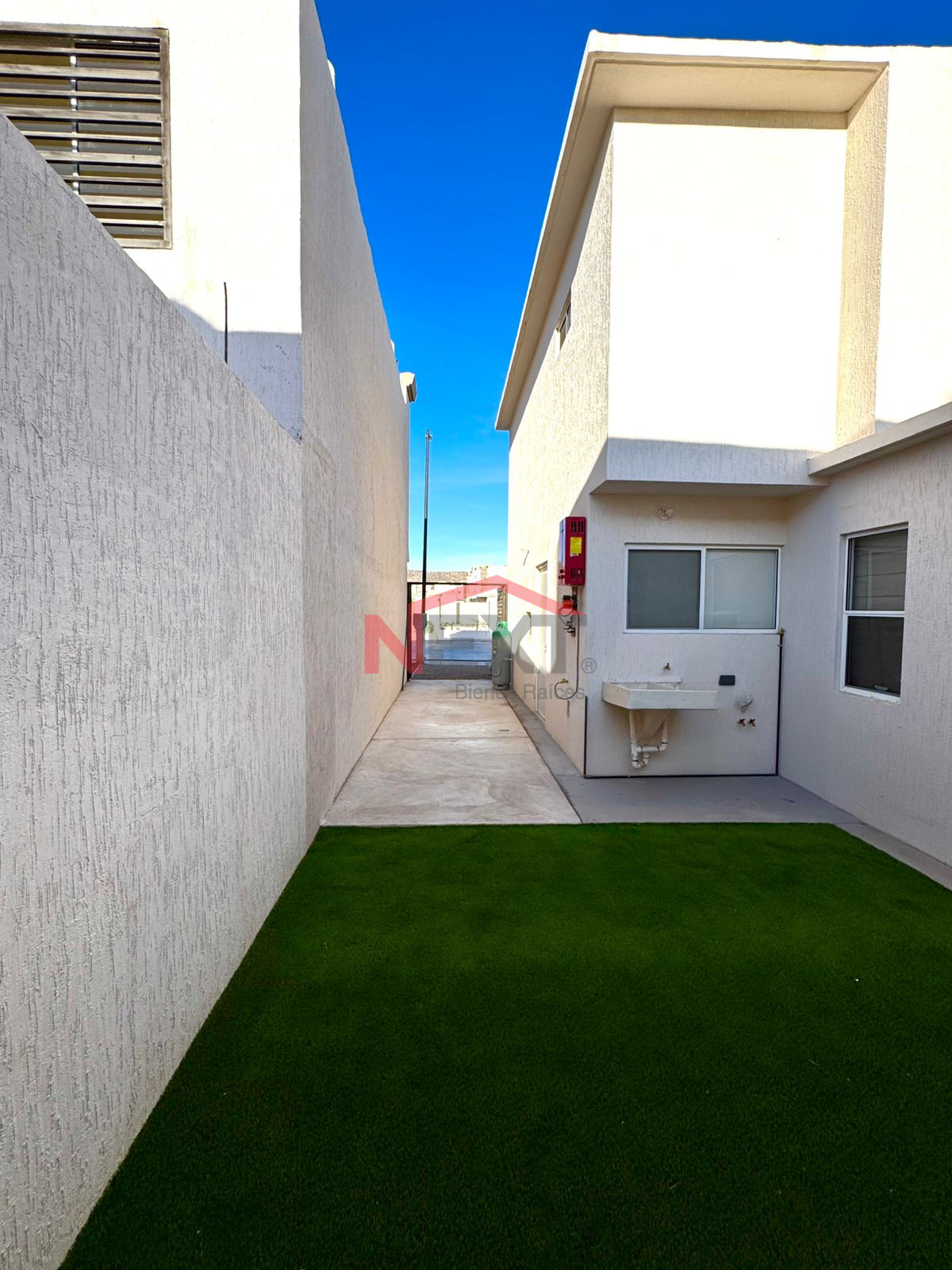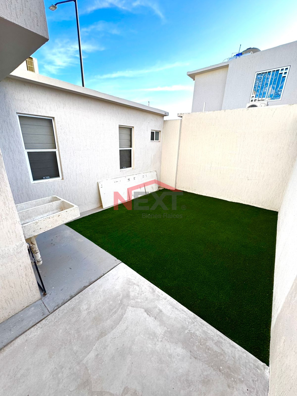 🌿 Patio con pasto sintético y pasillo de concreto