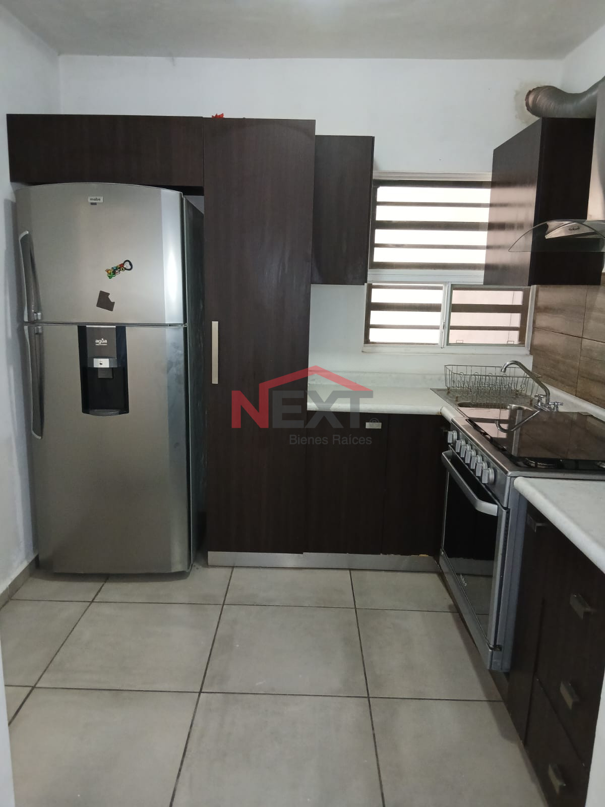 - Cocina equipada con estufa, campana, refrigerador y alacena.