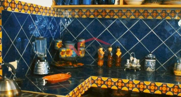 Cocina de madera de pino con azulejo de Talavera