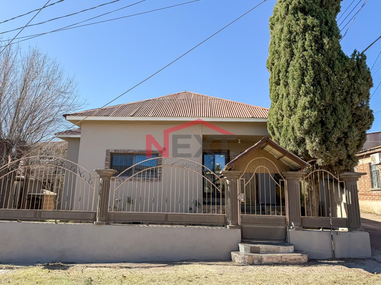 La propiedad cuenta con jardines bien cuidados, áreas verdes con nopal y árboles frutales como durazno y ciruelo, que aportan sombra, frescura y un entorno agradable, ideal para el clima de Cananea y para disfrutar los espacios exteriores tanto en uso habitacional como para renta.