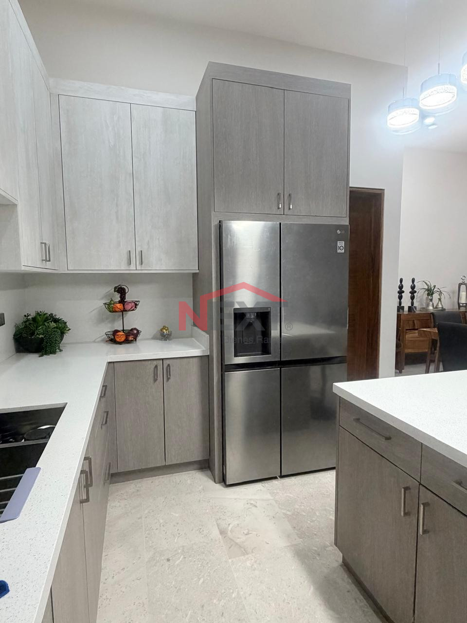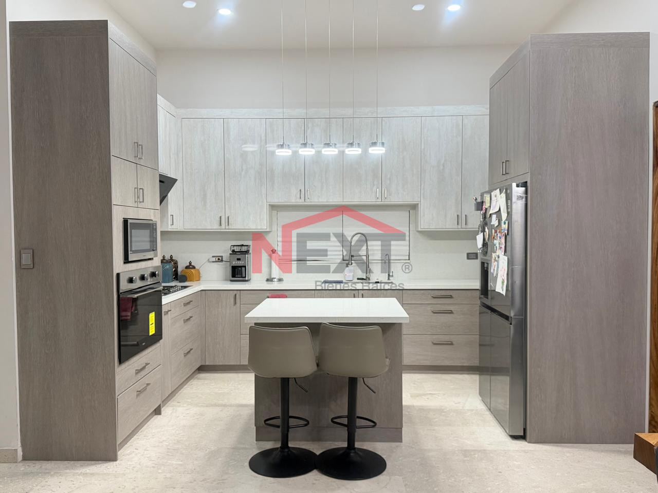Pisos de Mármol, puertas de parota, vestidores en melamina, cocina de melamina y cubierta de cuarzo, mueble de TV en estancia, aires inverter frío/calor, lámparas colgantes y abanicos de techo, sistema de riego.