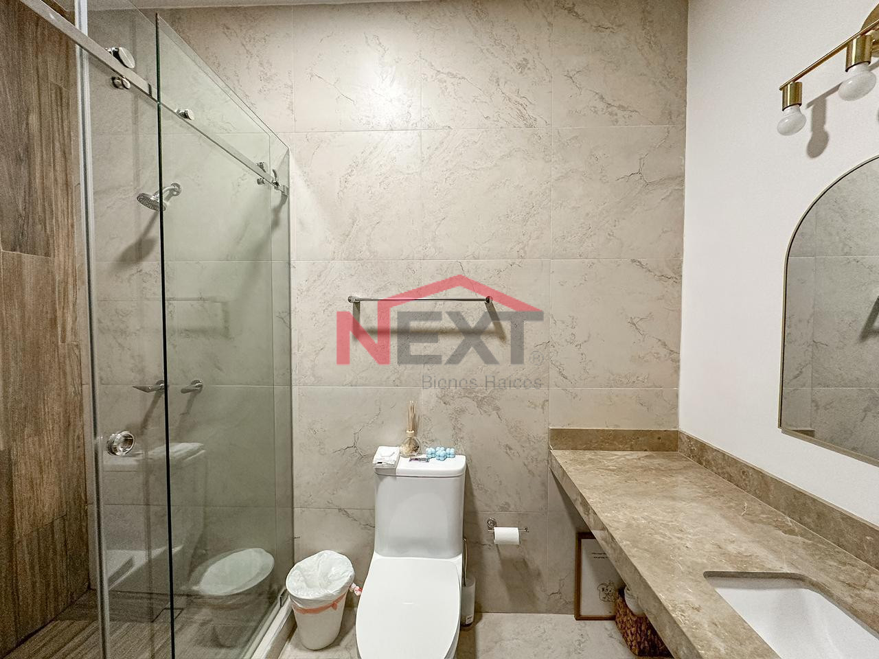 estancia, 2 recámaras secundarias con baño completo cada una.