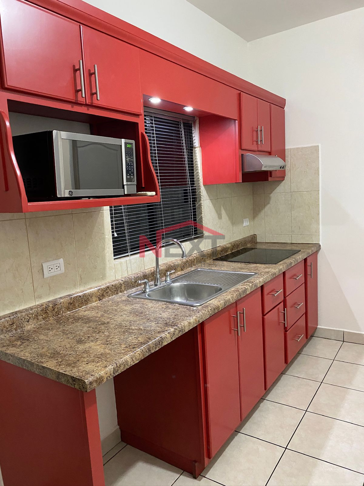 🧑🍳 Cocineta con parrilla, campana, refrigerador, microondas.