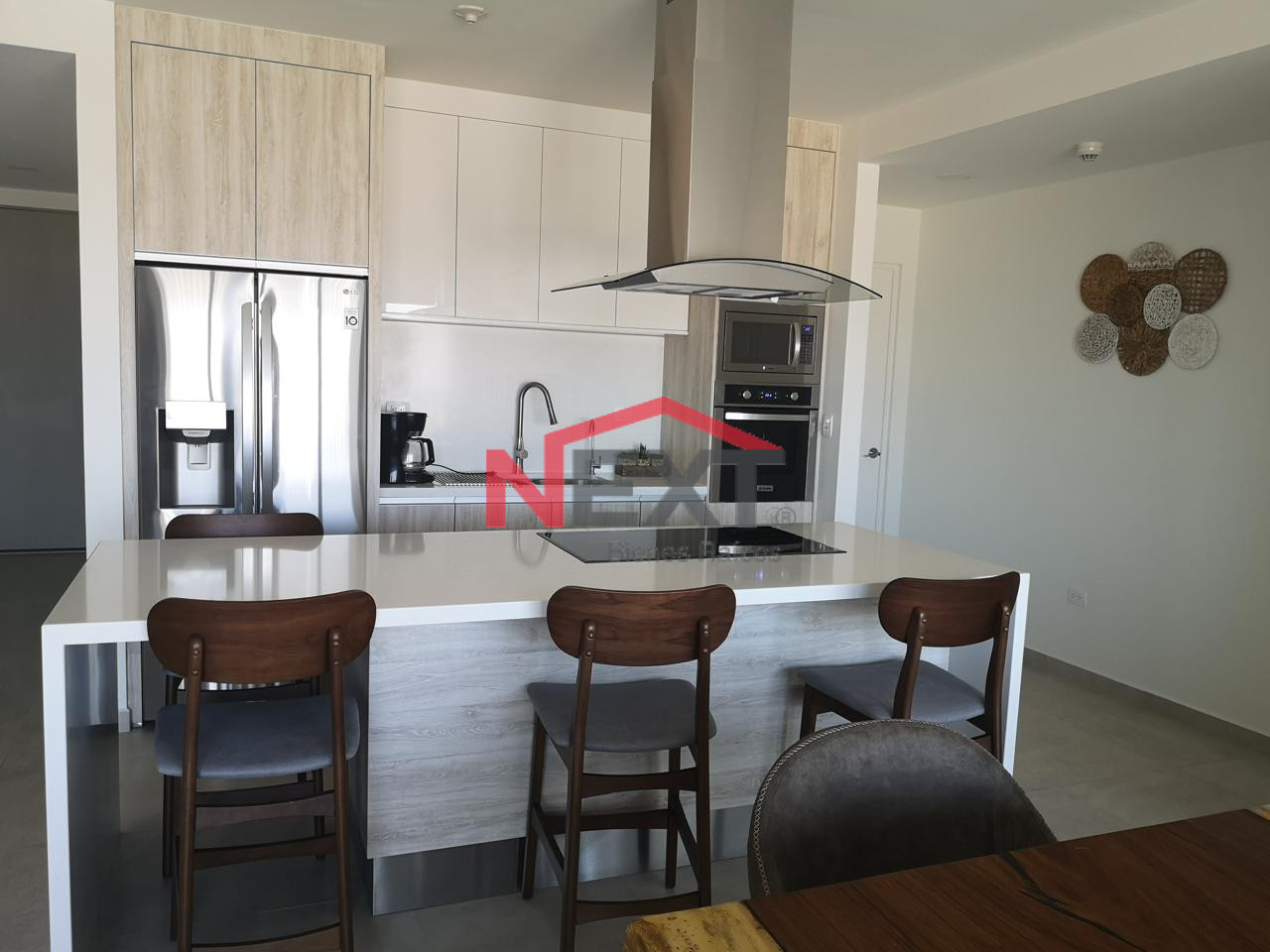 *COCINA MODERNA TOTALMENTE EQUIPADA CON PARRILLA ELECTRICA, HORNO ELECTRICO, PURIFICADOR DE AGUA, REFRIGERADOR, CAMPANA, MICROONDAS, BARRA CON BANCOS