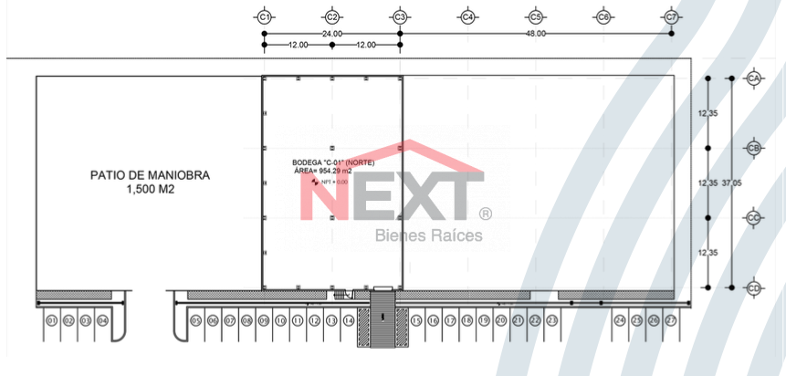 * Patio de maniobras de 1,500 m², ideal para tráileres y operaciones de carga/descarga