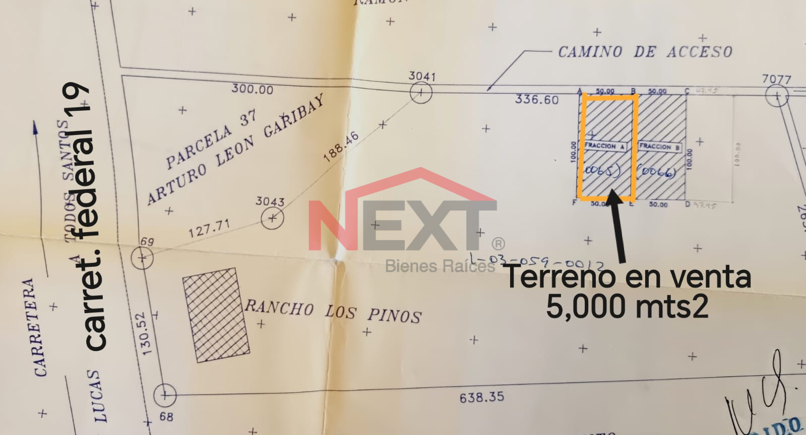 Terreno rústico con superficie de 5,000 m², ubicado en el Ejido Plutarco Elías Calles, Delegación Todos Santos, Municipio de La Paz, B.C.S.