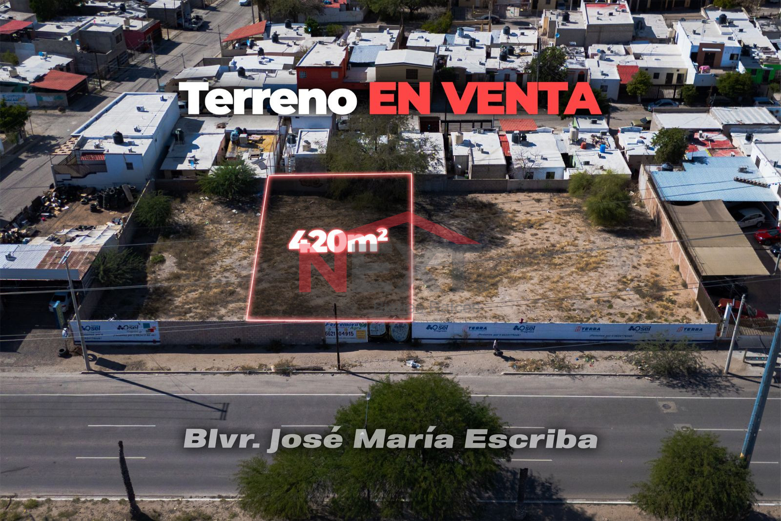 Se vende terreno de 420 m² ubicado sobre el Bulevar Juan Escriba, una de las vialidades con mayor flujo y crecimiento en Hermosillo.