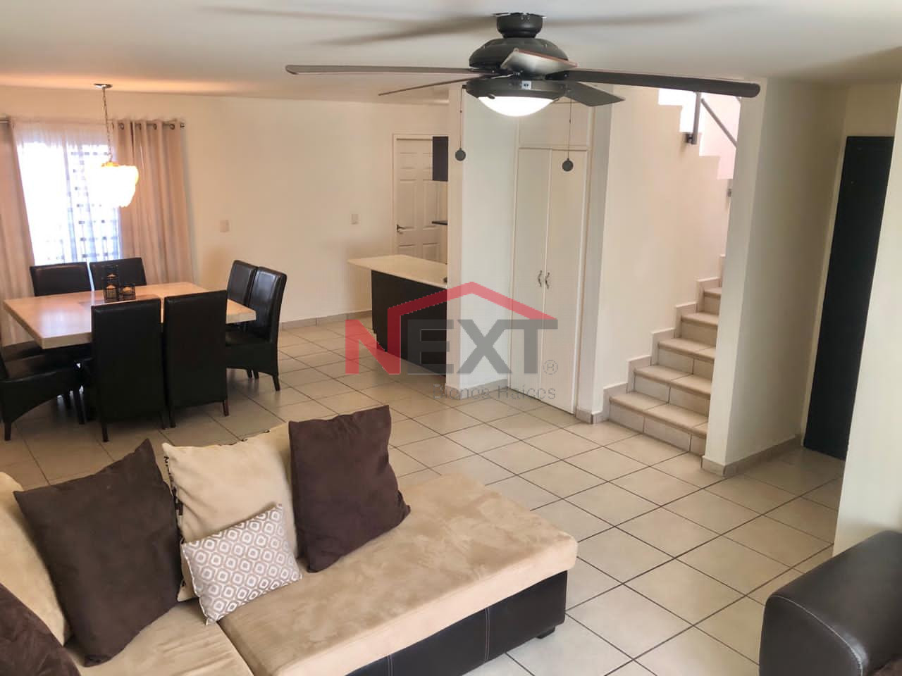 se deja equipada con aire acondicionado, cocina, la casa se entrega en buen estado de mantenimiento, totalmente bardeada y con rejas de seguridad.
