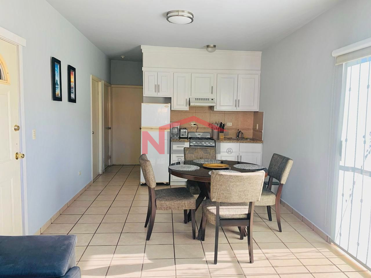 * Cocina integral con refrigerador y estufa