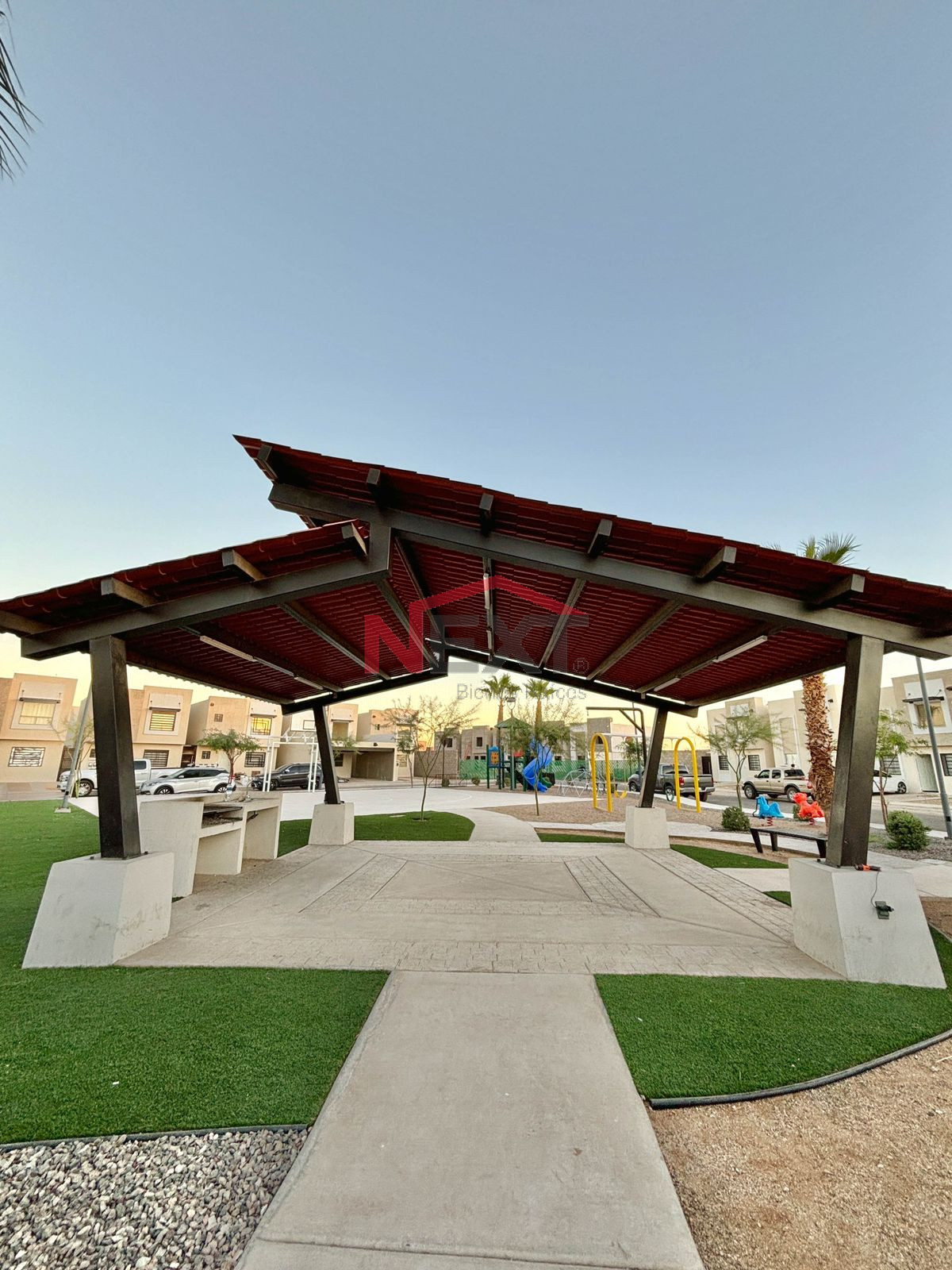 - Área común con: Alberca, terraza, áreas verdes con juegos infantiles, y andadores.
