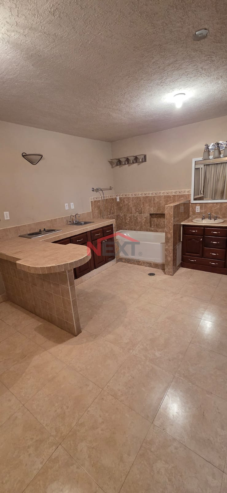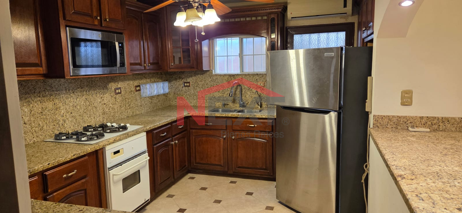 - COCINA INTEGRAL DE MADERA DE CEDRO CON CUBIERTA DE GRANITO EQUIPADA CON ESTUFA, REFRIGERADOR. EQUIPO DE AGUA PURIFICADA