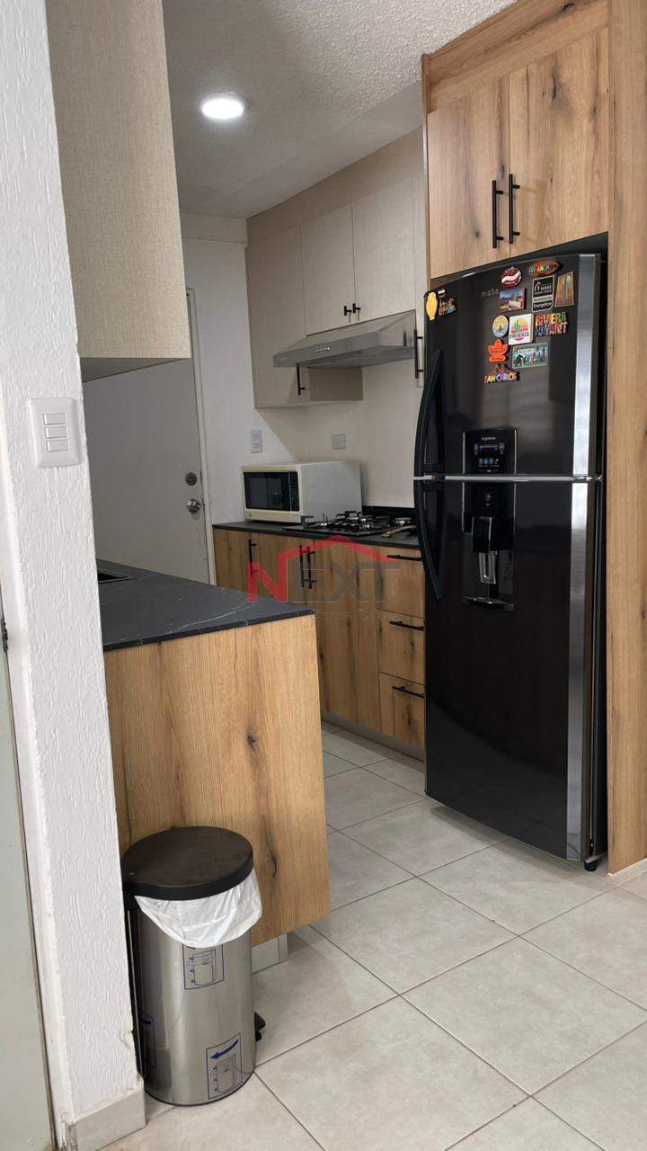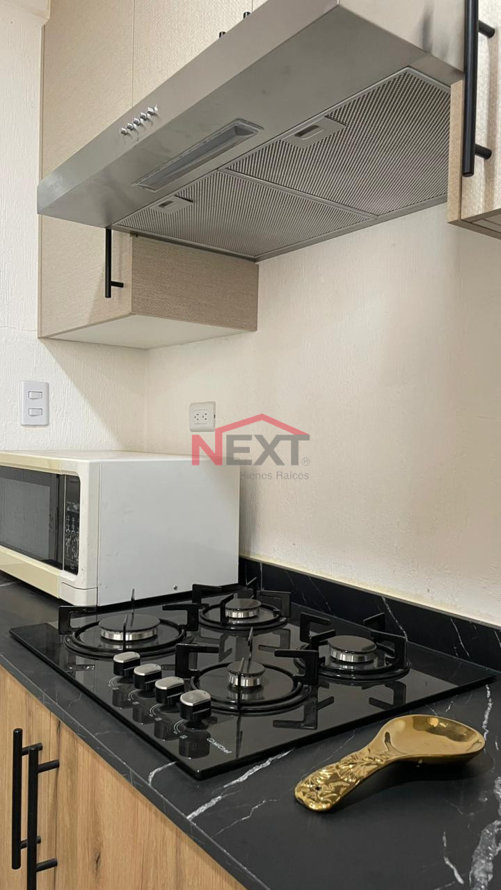 - cocina integral con refrigerador, microondas, estufa y campana