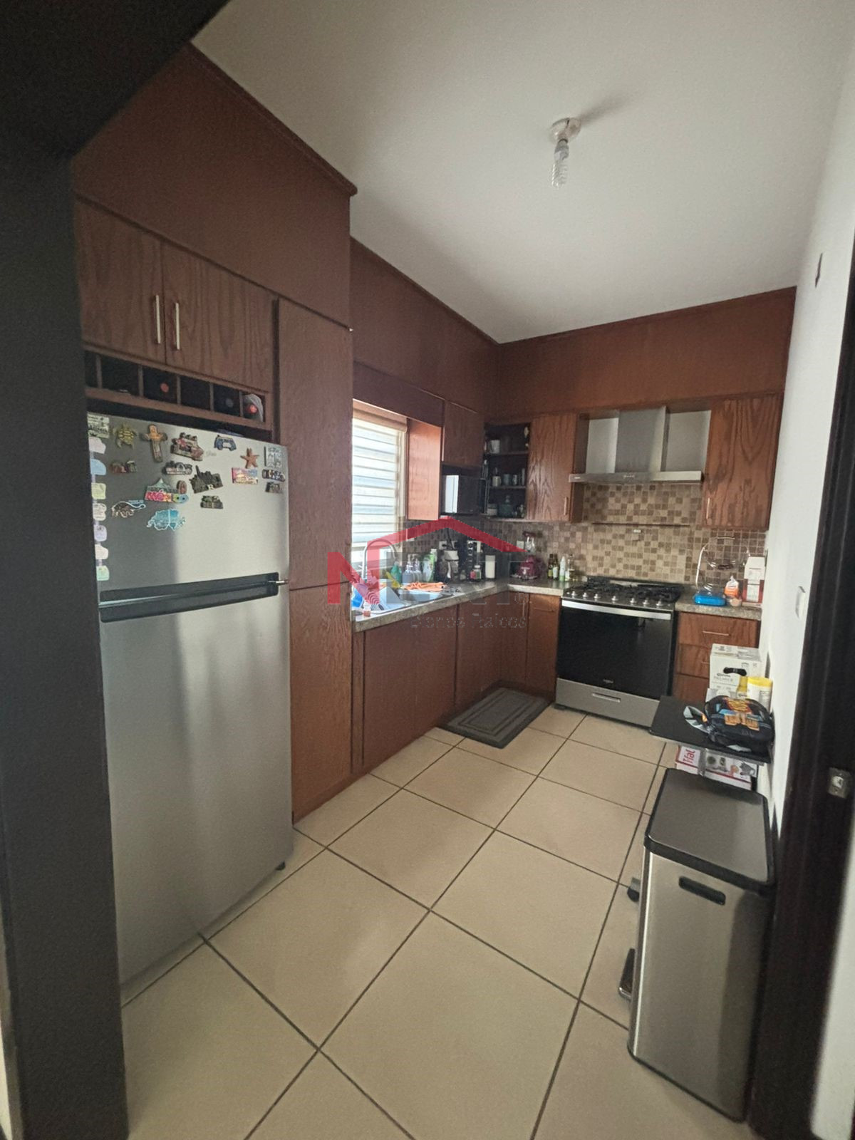 - Cocina integral equipada con estufa y refrigerador.