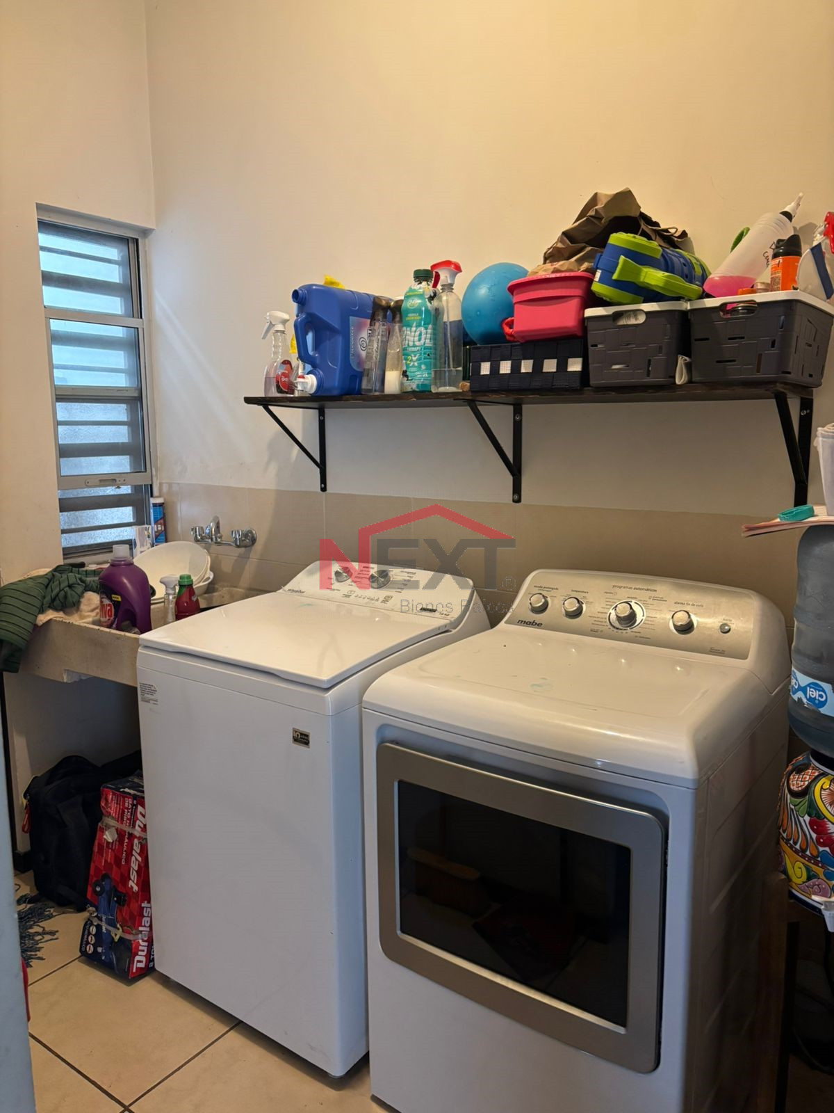 - Lavanderia techada con lavadora y secadora.