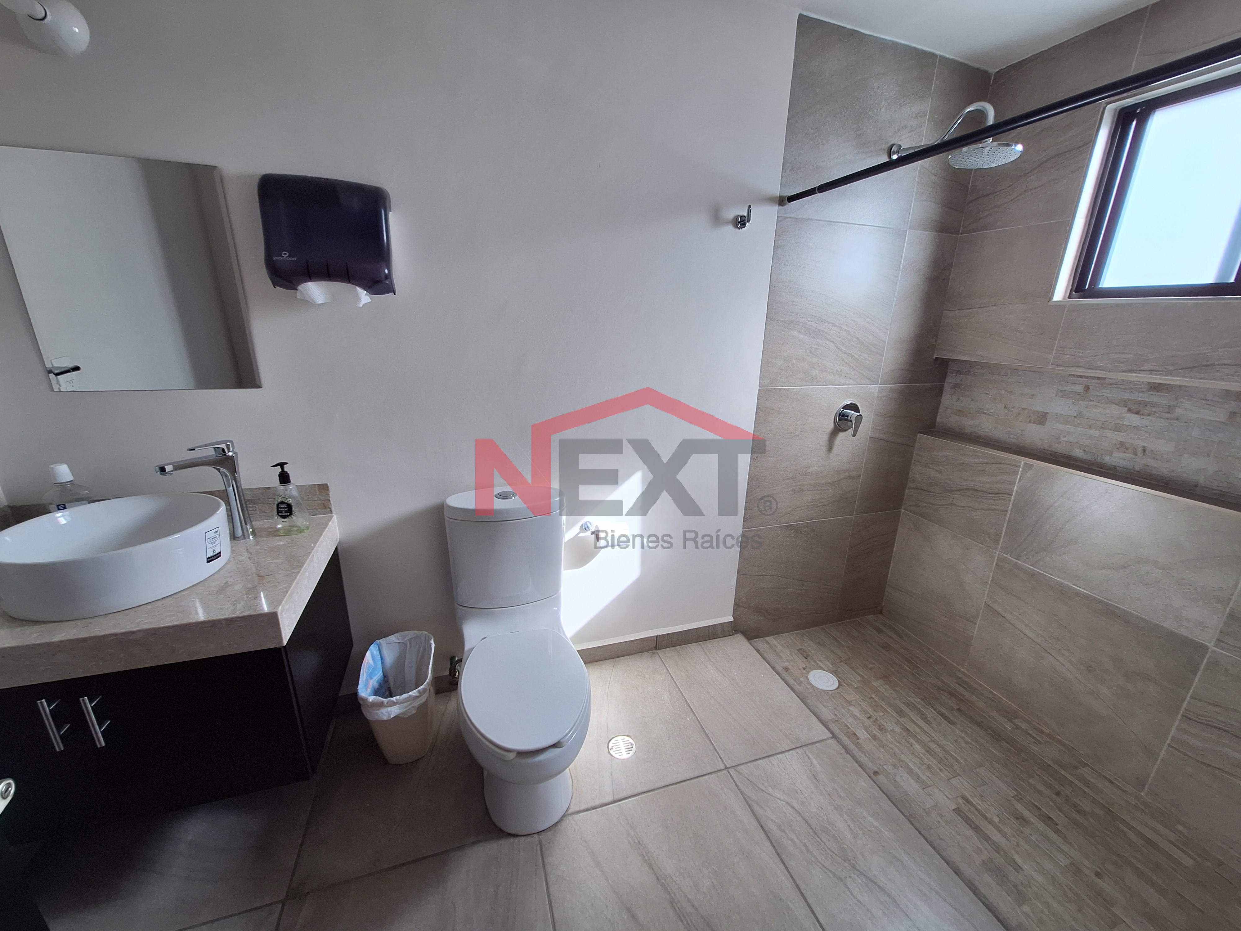 Recámara principal con área para vestidor y baño completo