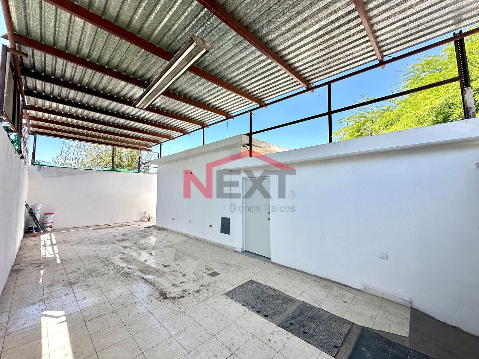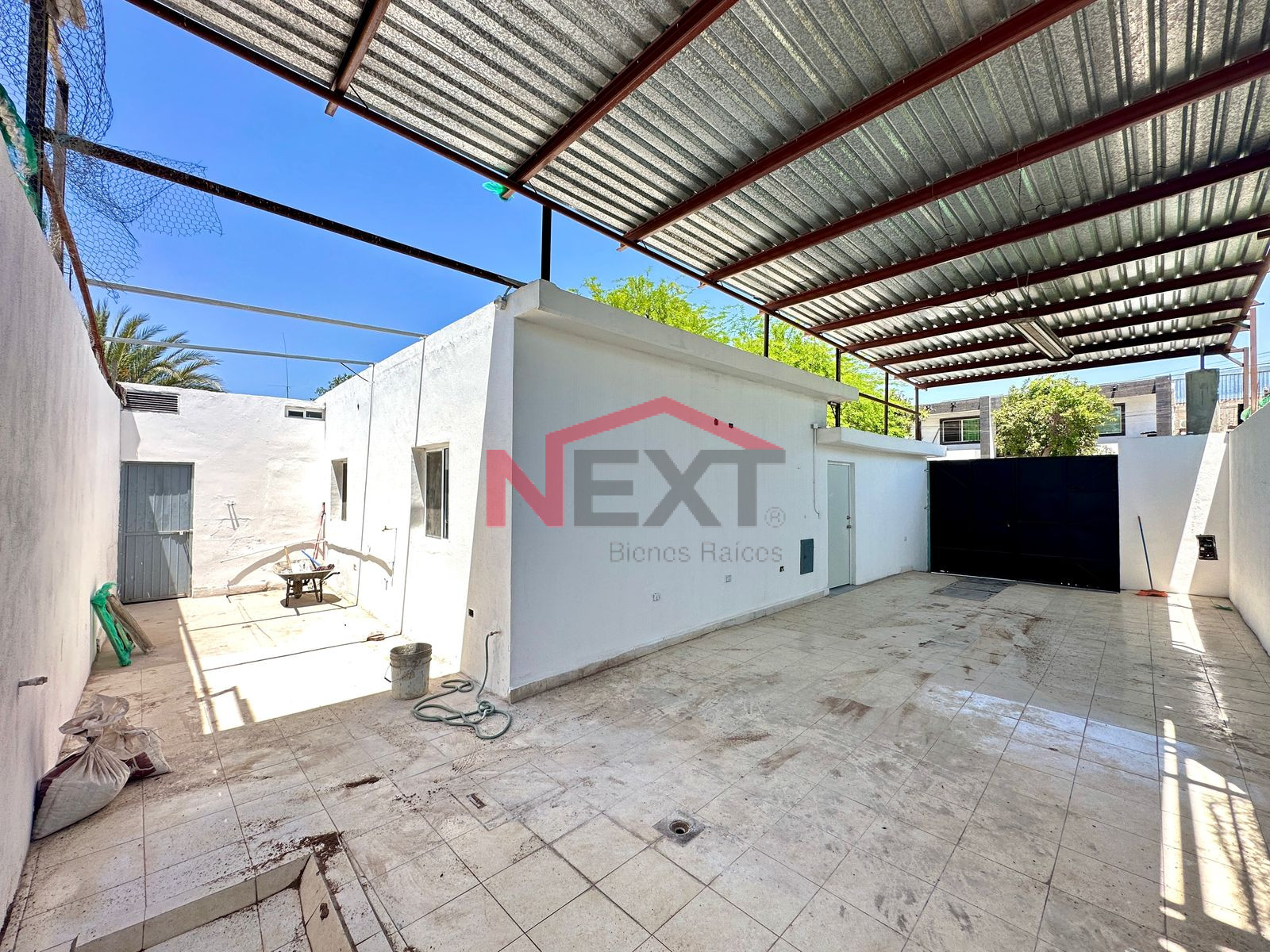 Cochera con portón y cobertizo de lámina