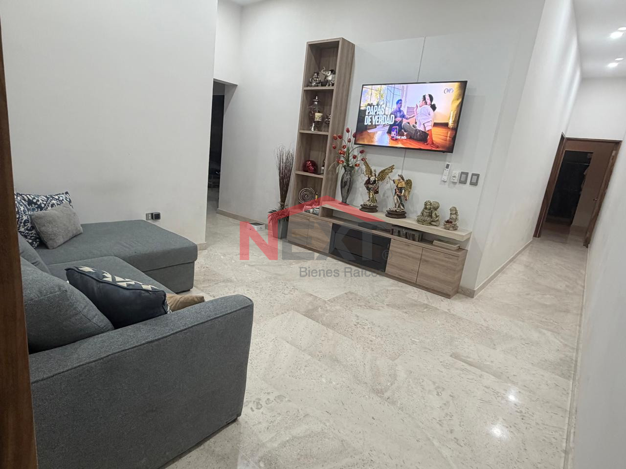 Pisos de Mármol, puertas de parota, vestidores en melamina, cocina de melamina y cubierta de cuarzo, mueble de TV en estancia, aires inverter frío/calor, lámparas colgantes y abanicos de techo, sistema de riego.
