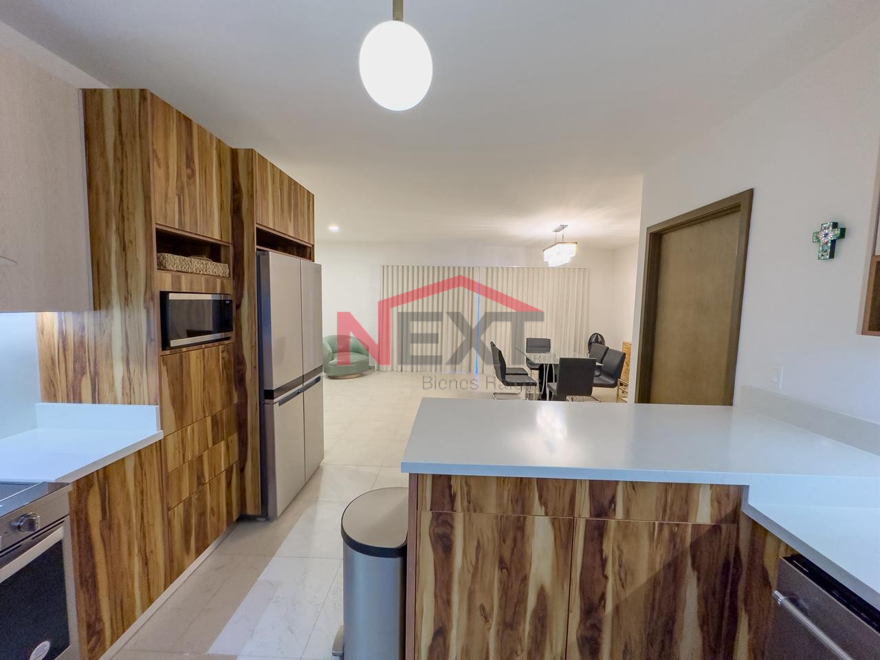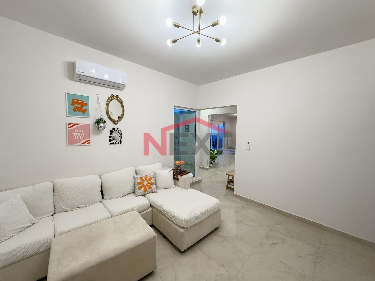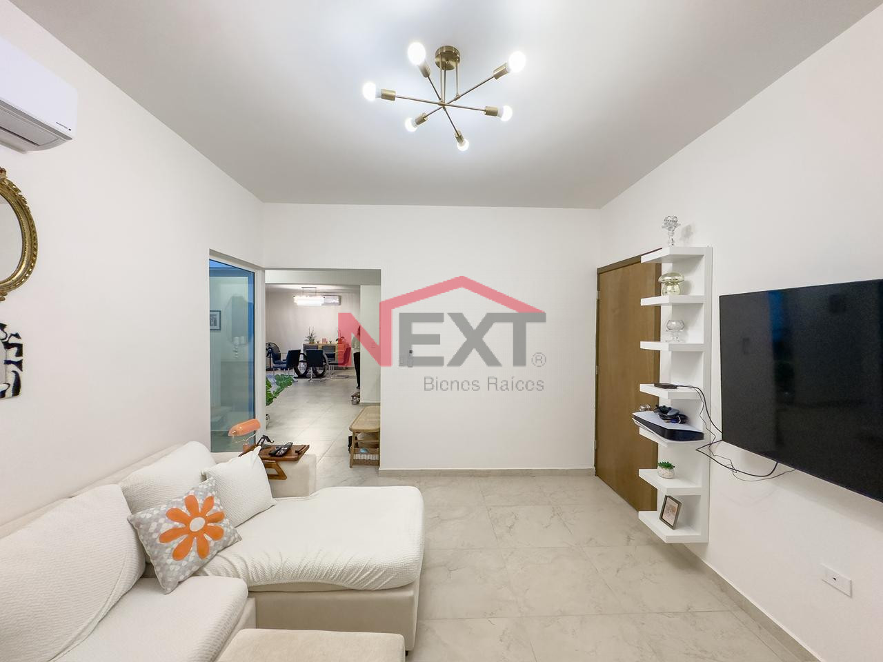 Recibidor, sala, comedor, medio baño, cocina y lavandería.