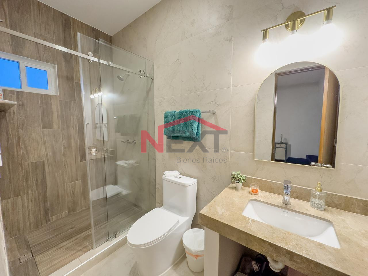 estancia, 2 recámaras secundarias con baño completo cada una.
