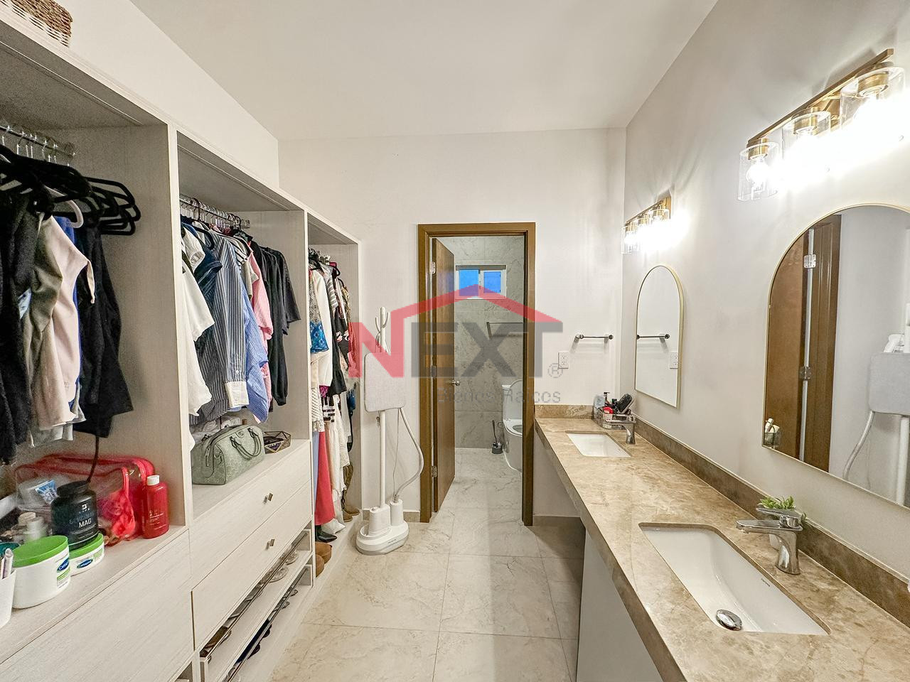 Recámara principal con walk in closet, baño completo y