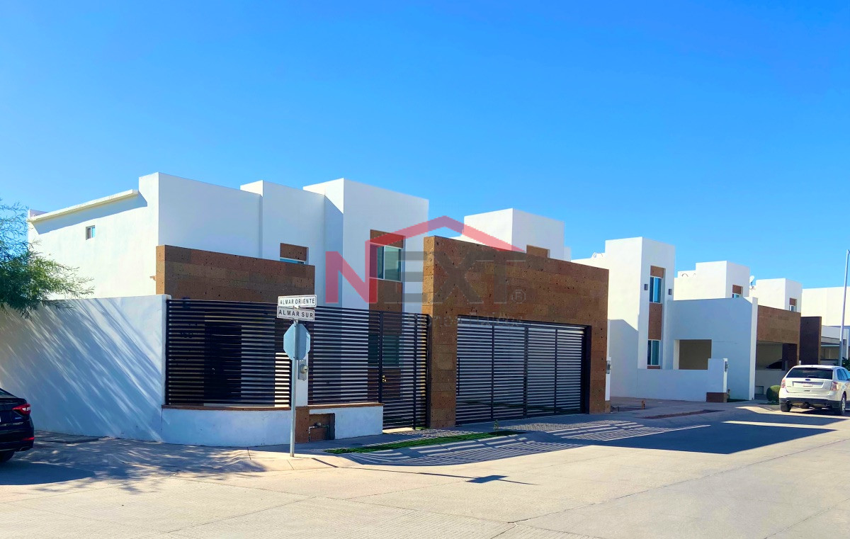 Venta casa equipada con excedente de terreno, en zona al poniente por el Blvd. Colosio, en Residencial La Coruña Secc. Almar, Modelo Valladolid, dos niveles. En esquina, con terreno excedente, acceso controlado, seguridad y monitoreo 24/7, cerco eléctrico perimetral y casa club con alberca, juegos infantiles y cancha de futbol 7. Vialidades de concreto hidráulico. Acceso a todos los servicio incluyendo Gas Natural.