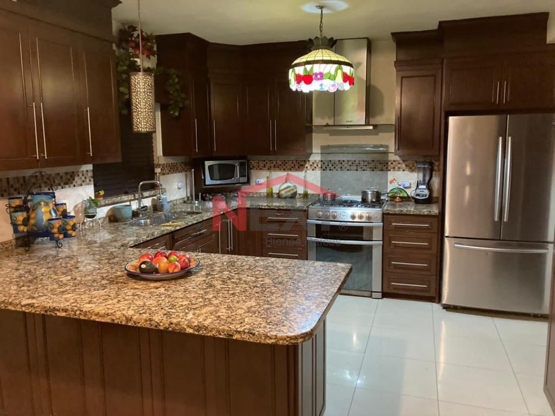 – Cocina con barra desayunadora y cubierta de granito