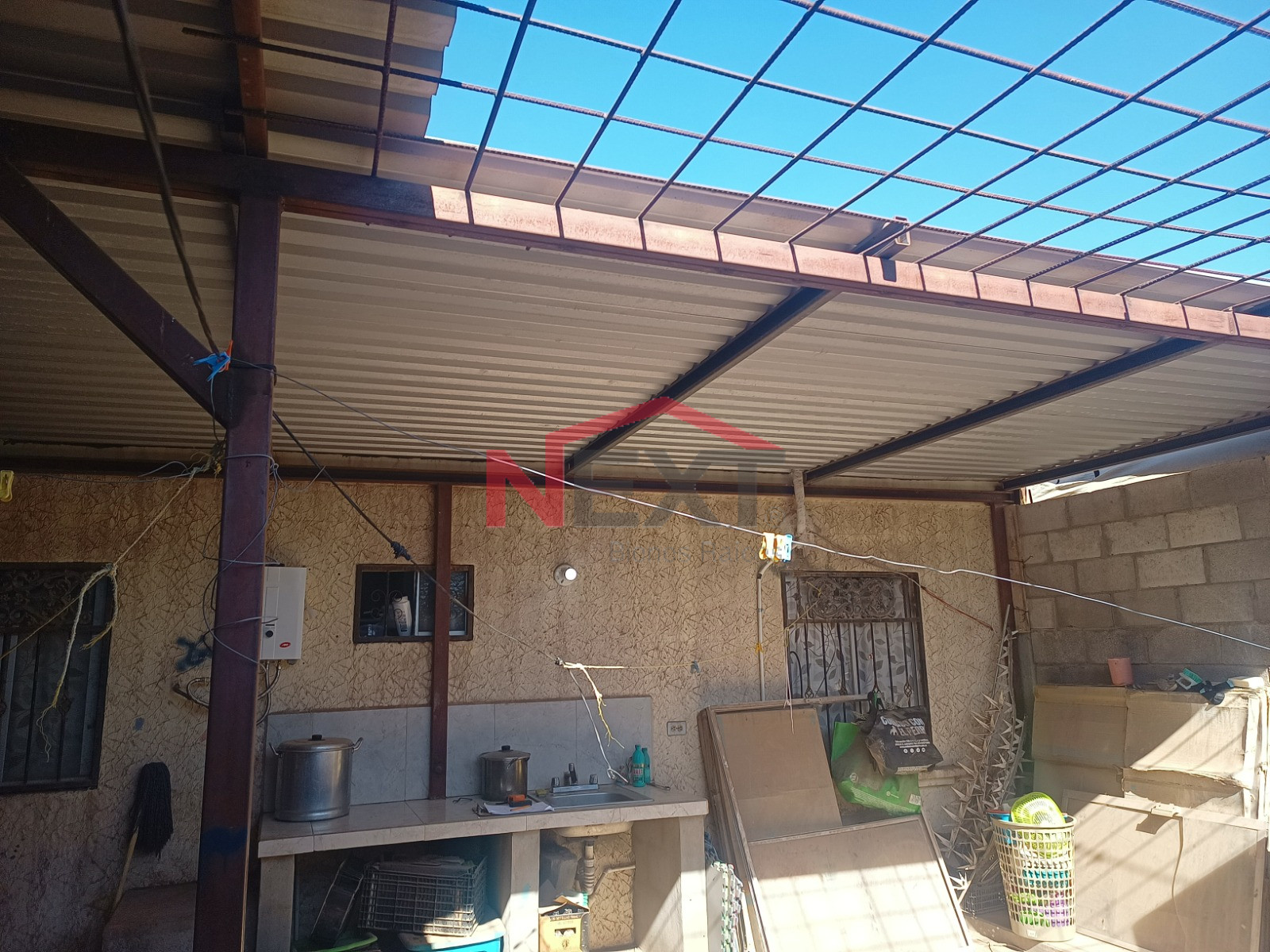 Patio encementado con techo de lámina