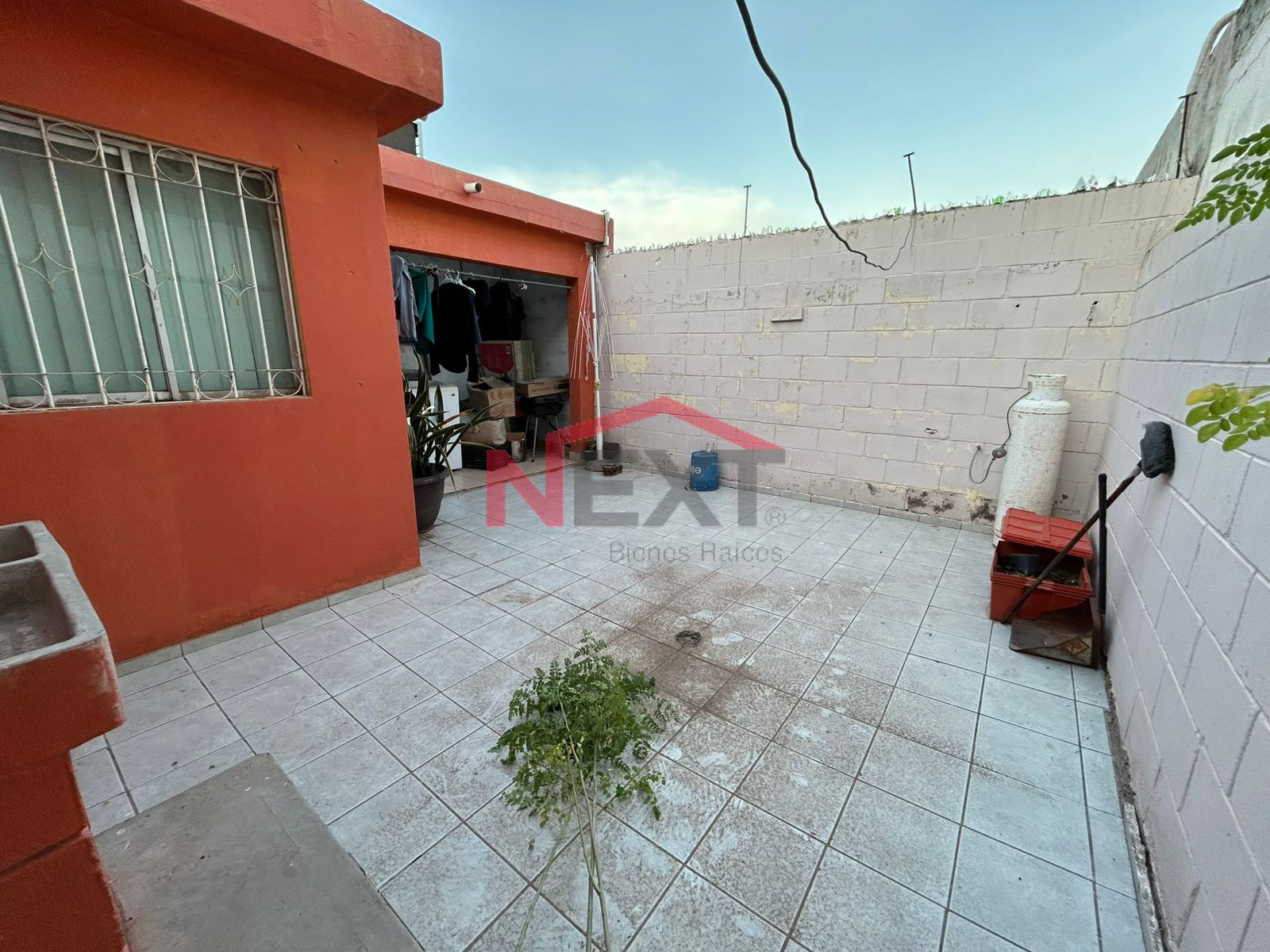 Patio bardeado y techado con área de lavado