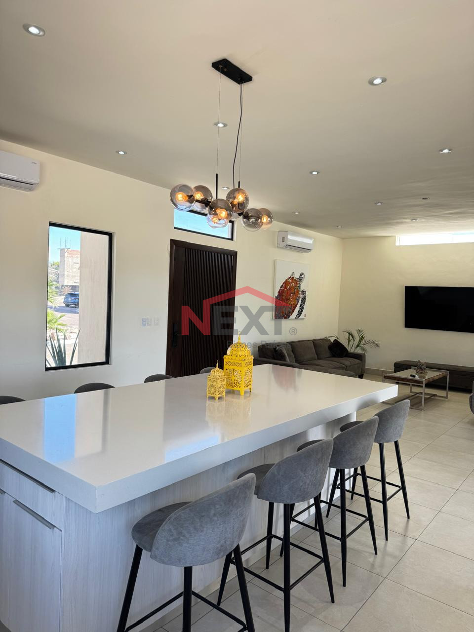 🍽 Cocina equipada con isla (8 bancos + refri doble puerta)