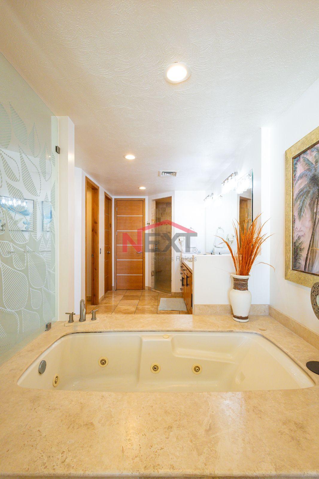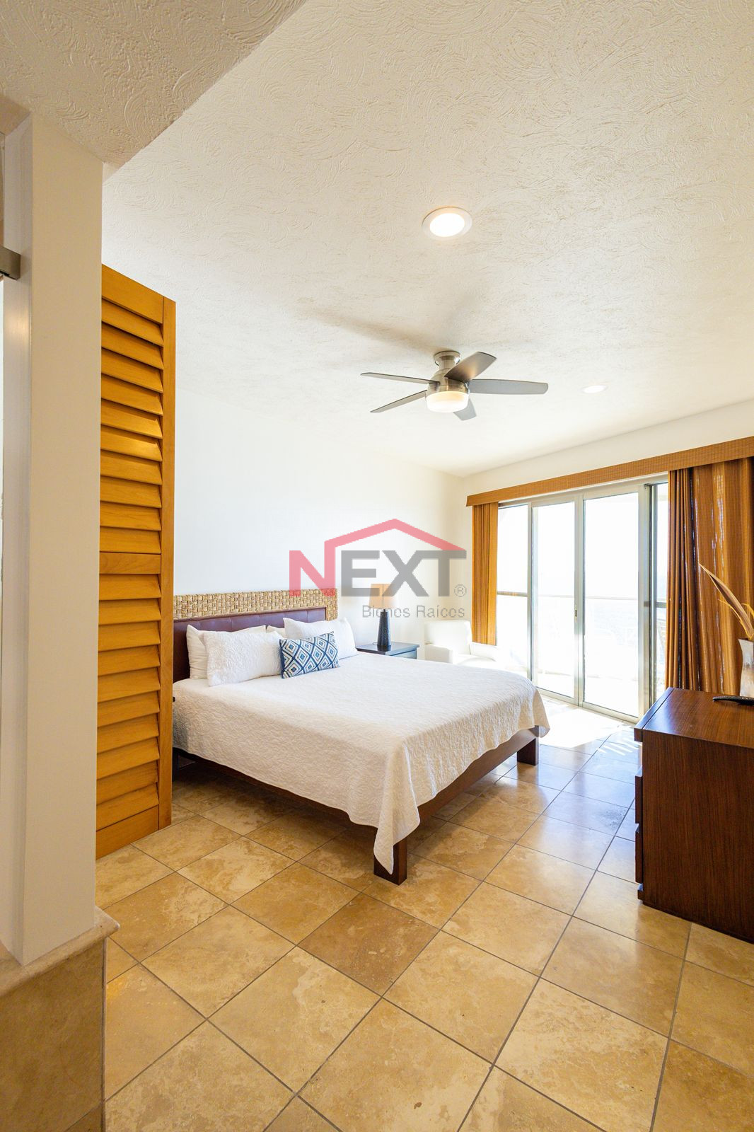 Recámara principal con clóset,baño completo con tina, y terraza privada.