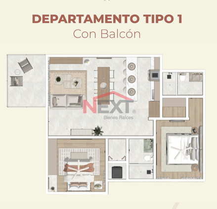 📐 100m² | 2 recámaras | 2 baños | balcón