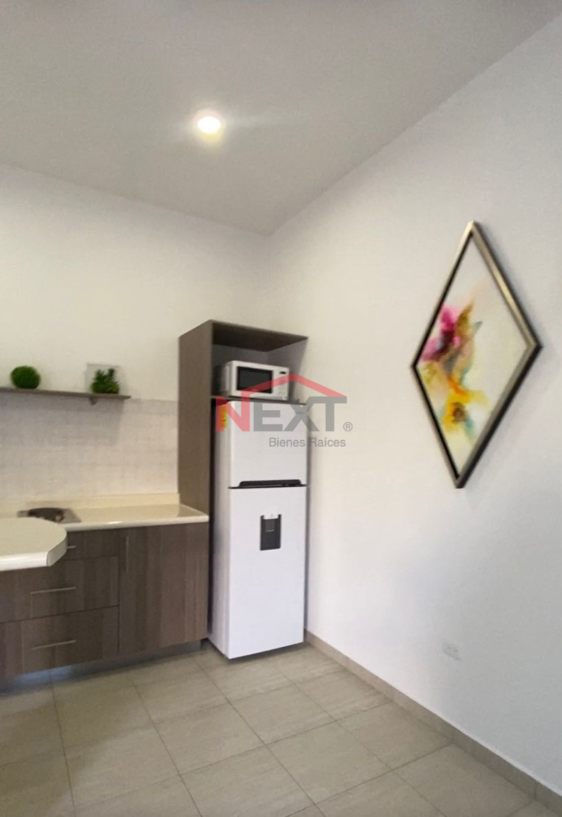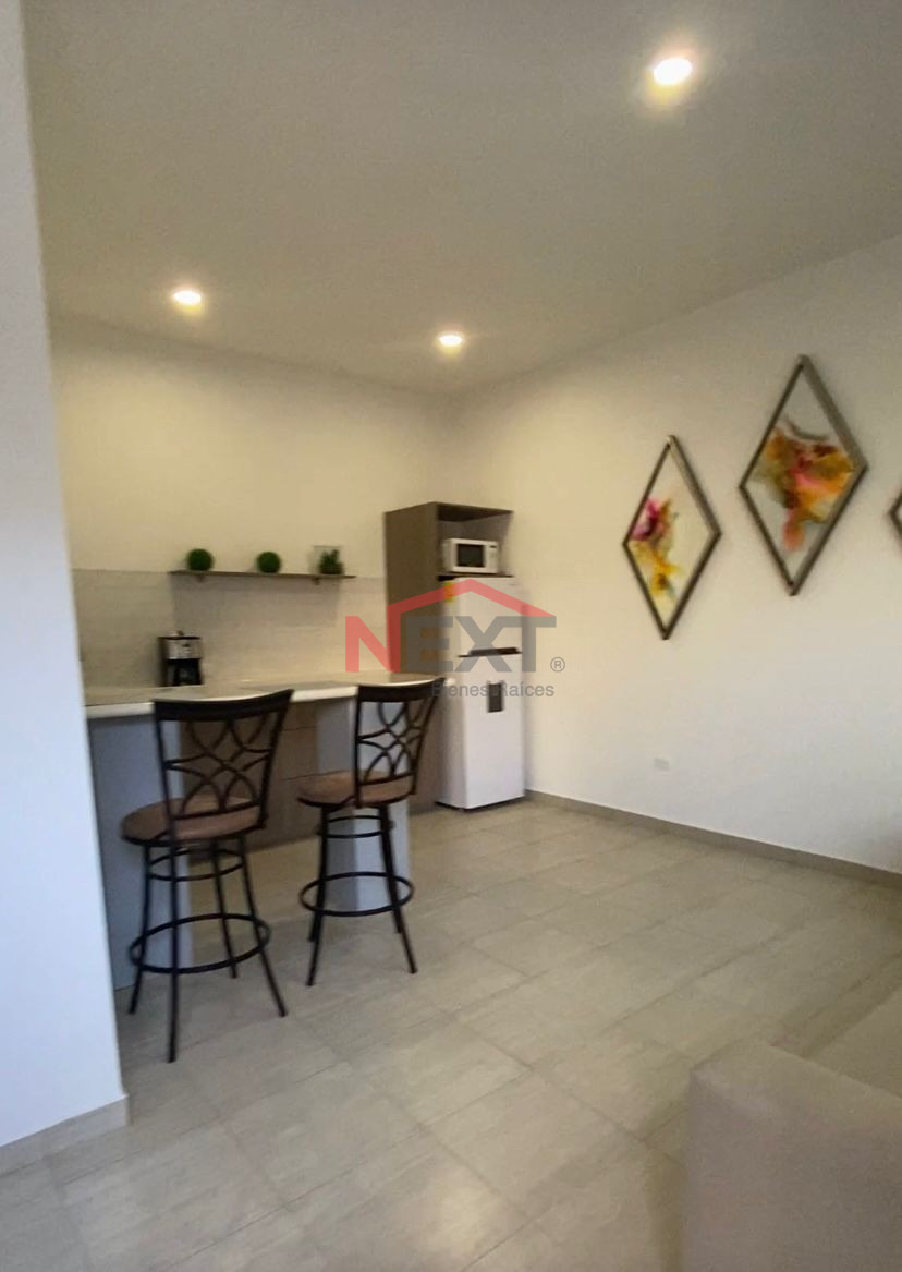 Departamento completamente amueblado y equipado, ubicado en primer piso, ideal para ejecutivos. Cuenta con sala, comedor, cocina en concepto abierto con barra desayunadora, estufa, microondas y refrigerador, baño completo, área funcional de descanso y cochera para un auto.