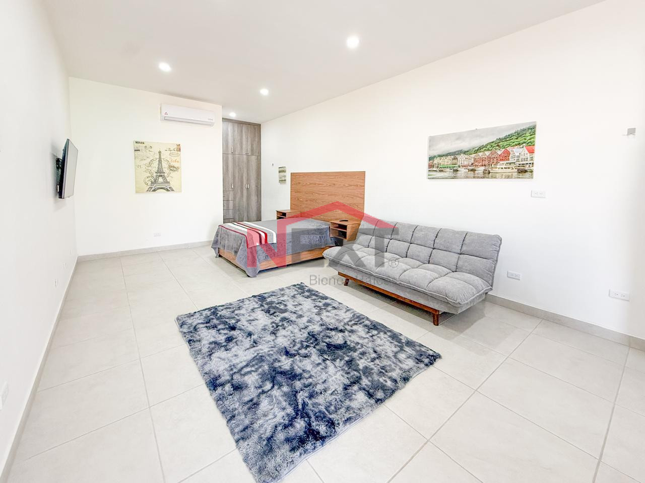 🔹 Espacio en monoambiente con cocina, recámara y TV, para una persona o pareja.