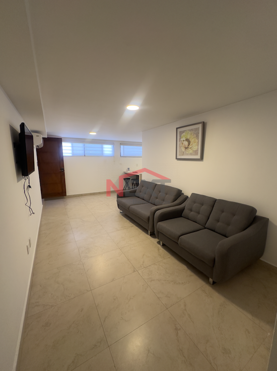 Cuenta con sala con sofá cama tipo love seat, cocina integral equipada con refrigerador, parrilla eléctrica, campana y tarja, así como escritorio para área de trabajo.