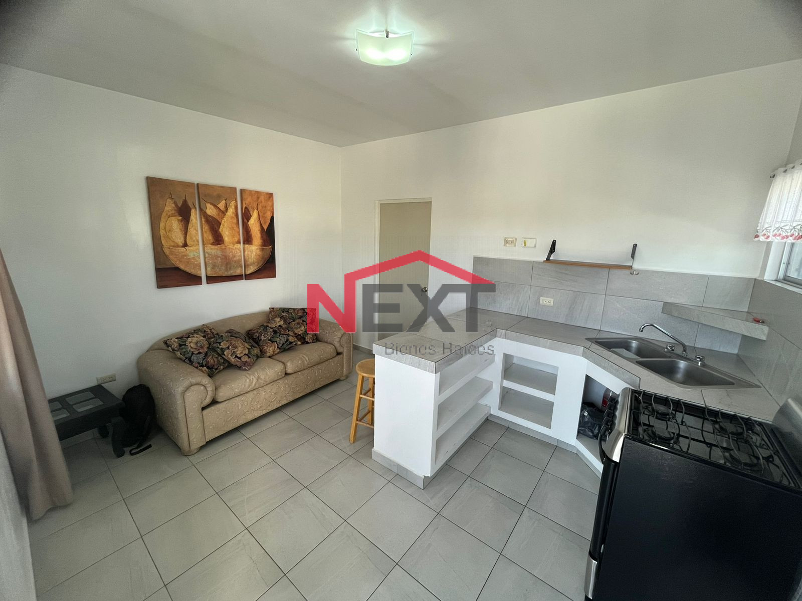 - cocina equipada con estufa y refrigerador (refrigerador no aparece en fotos)