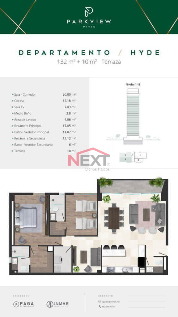 DEPARTAMENTO EN VENTA EN PARKVIEW PITIC MODELO HYDE 302