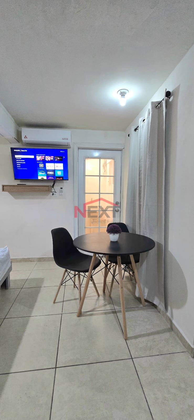 EQUIPADOS CON REFRIGERADORCAMA MATRIMONIAL, BURÓ, COCINETA, ESTUFA DE INDUCCIÓN, MINI SPLIT, CLOSET, TV SMART, MESA DESAYUNADOR, CUARTO DE LAVADO CON SECADORA Y LAVADORA COMPARTIDO, TINACO, BOILER ELÉCTRICO, BOMBA, HIDRONEUMÁTICO, 16 PANELES, COCHERA ELÉCTRICA PARA DOS AUTOS, 4 CAMARAS DE VIGILANCIA.