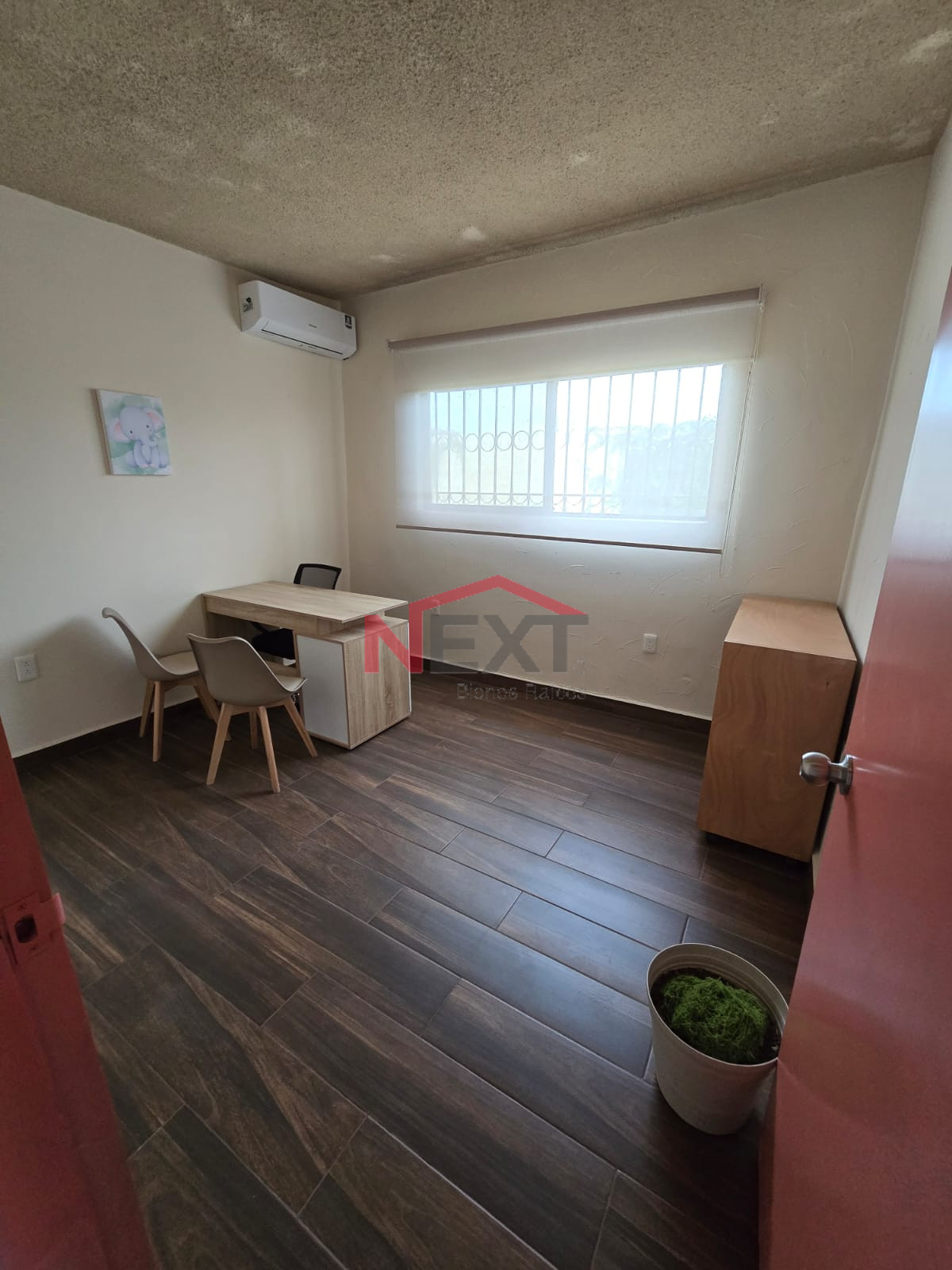 Equipado con Minisplit inverter, mueble de madera para almacenamiento, lámpara y persiana.