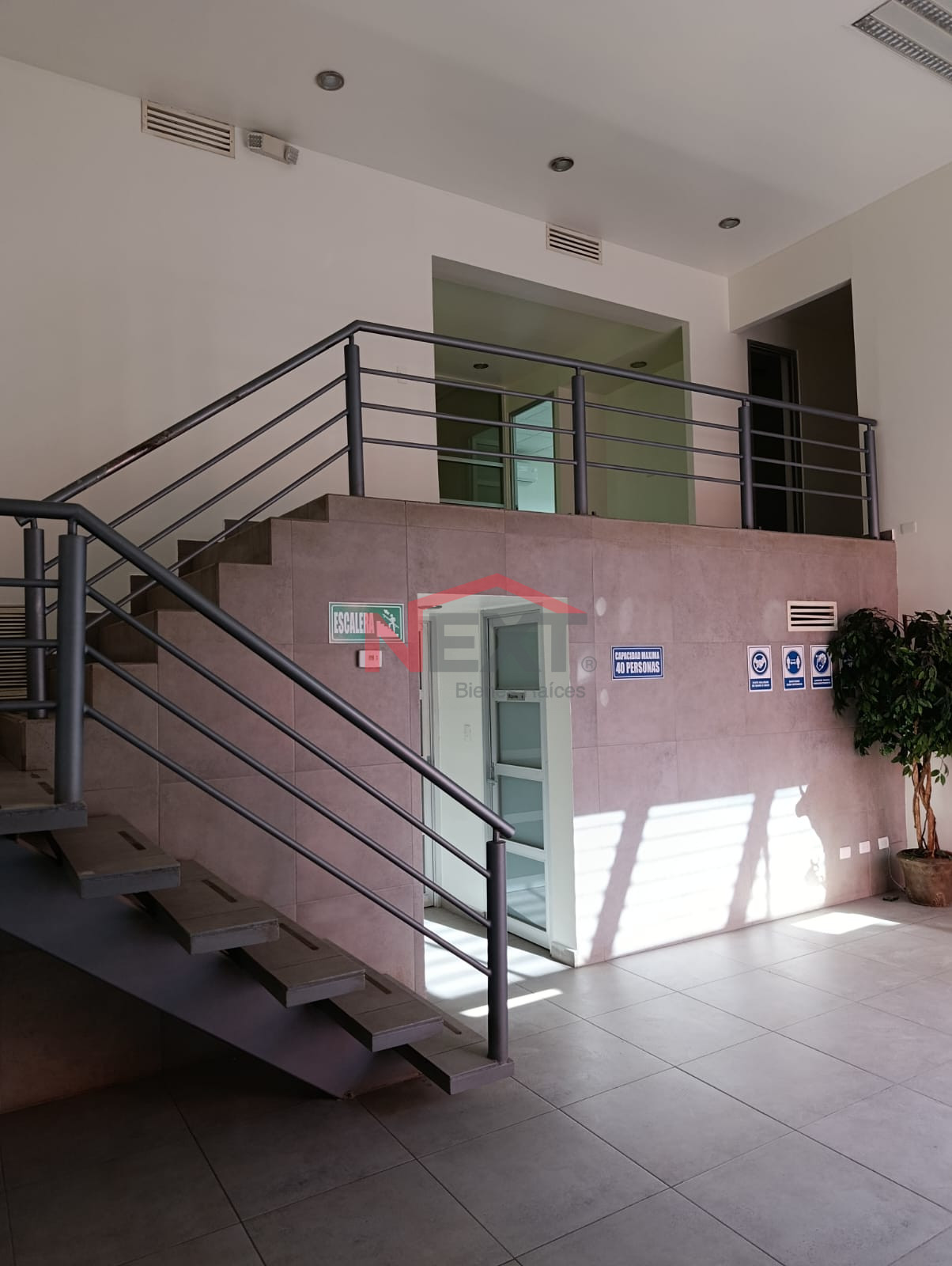 · 100 m2 en planta baja: área de recepción con baño, área de utensilios de limpieza, área de oficina para 2 personas, área de archivo y cafetería