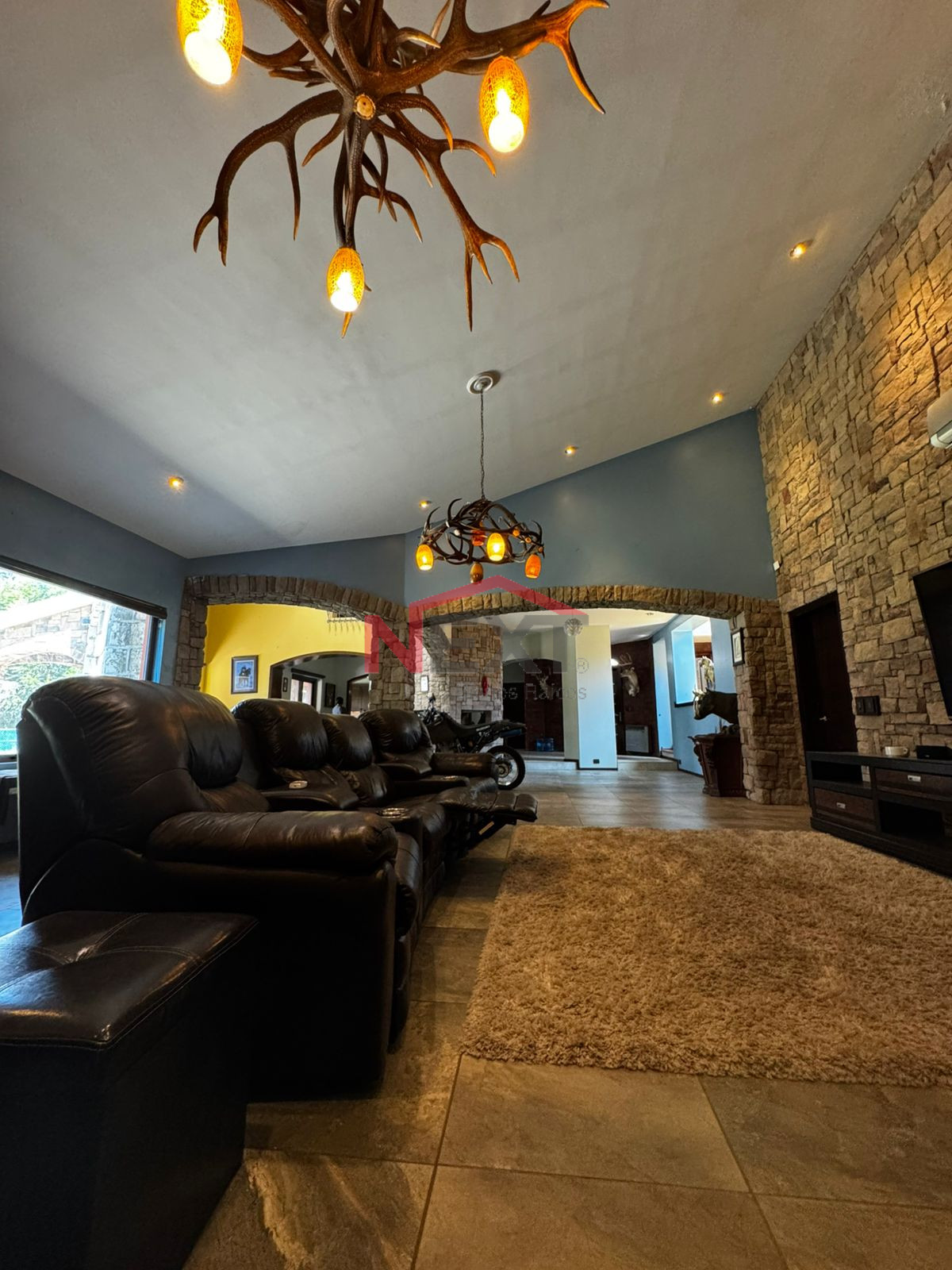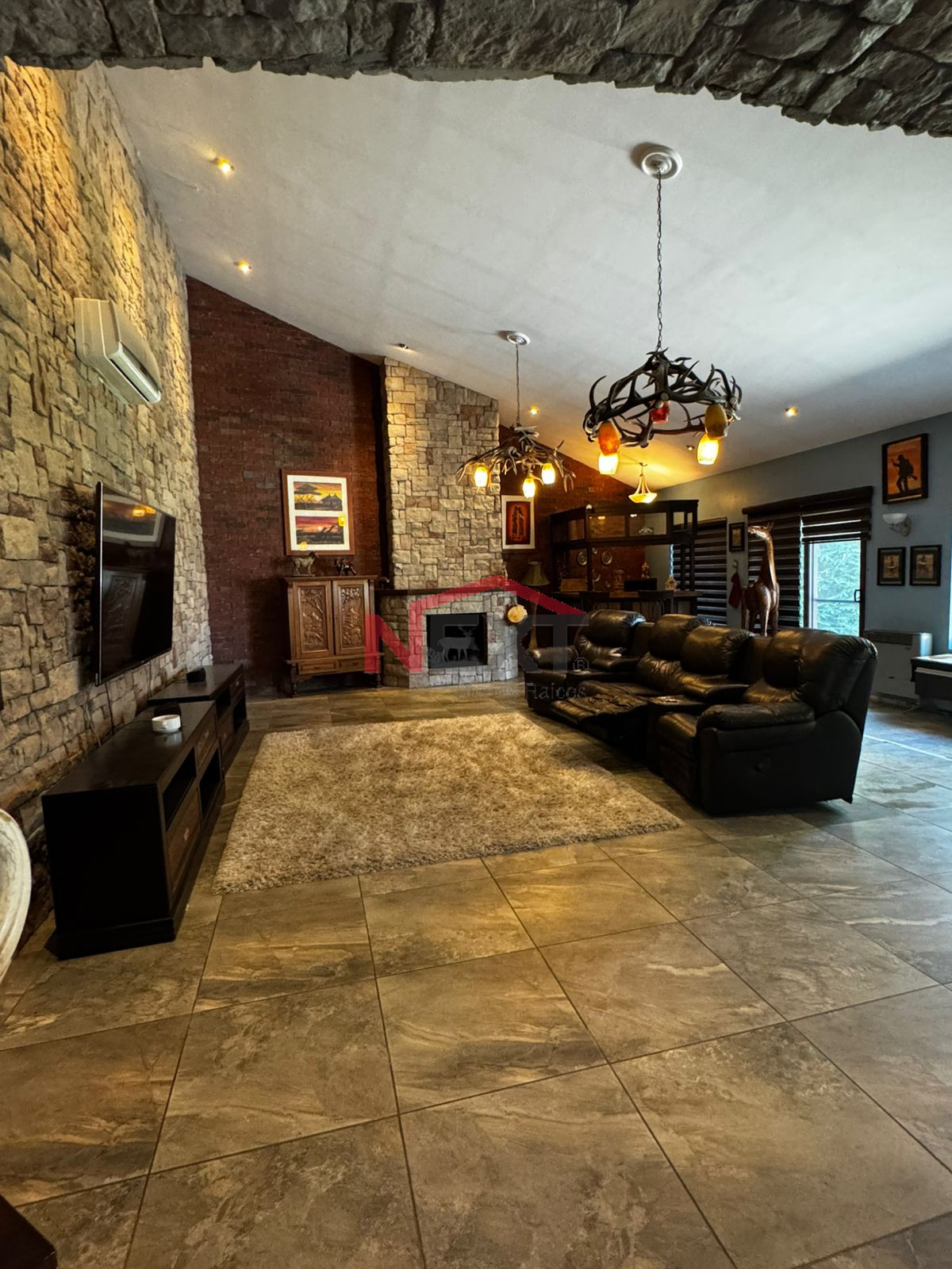 * Amplia sala de TV con bar y chimenea.