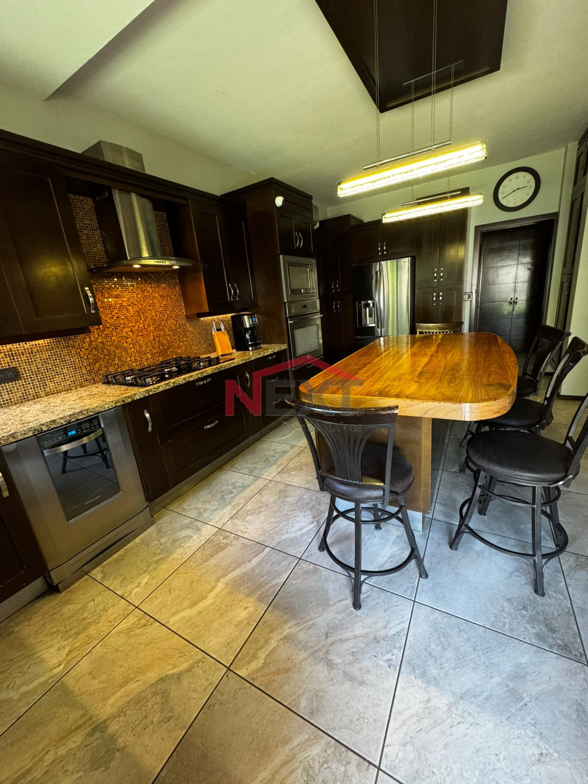 * Cocina con barra central.
