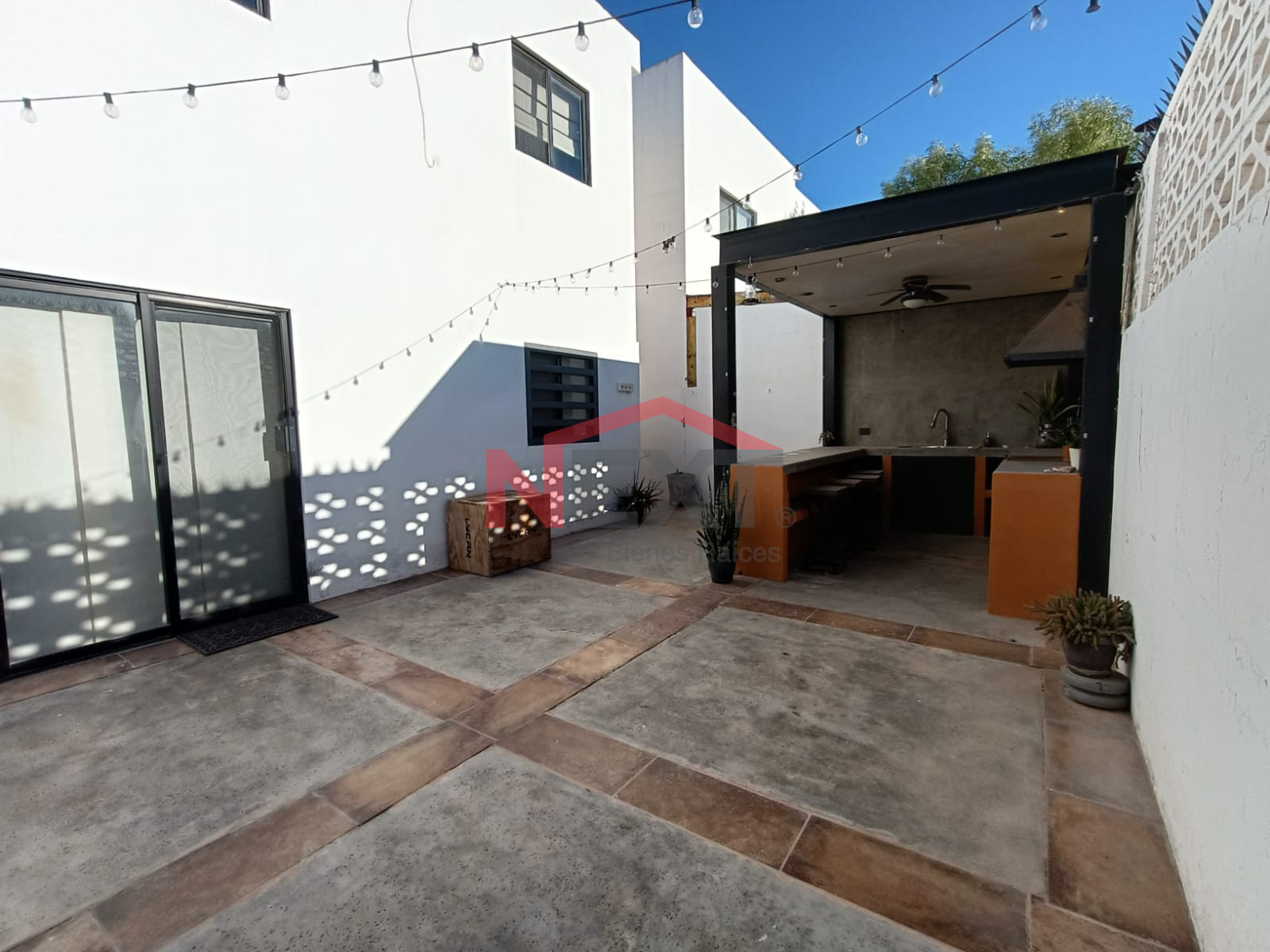 - Patio de muy buen tamaño con asador, barra con bancos e iluminación